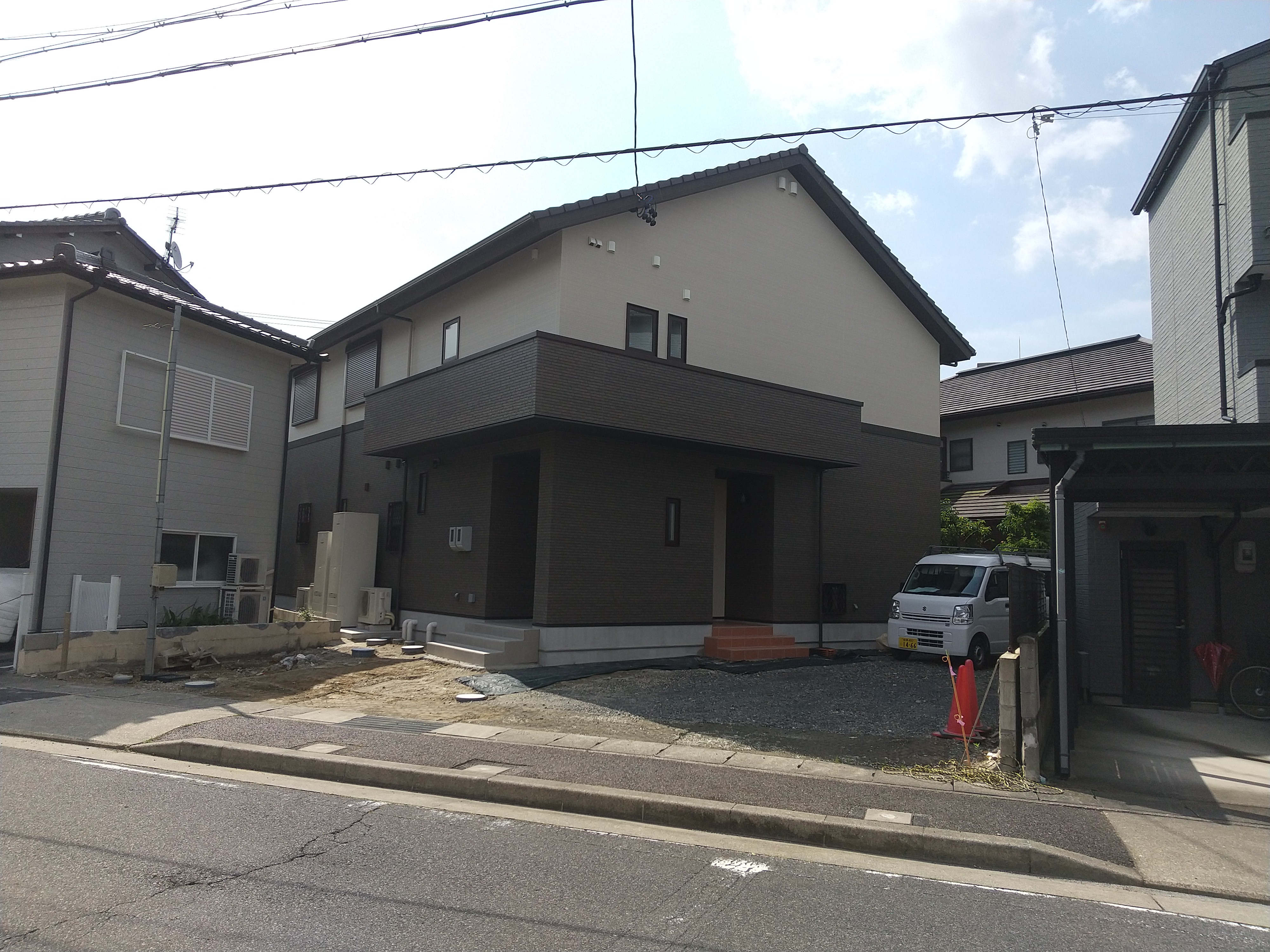 外壁はお母様が主に色決めをされました。サイディングは限られた色柄から選ぶ為、随分悩まれて、最終的にご実家に似た落ち着いた色合いの物を選ばれました。(後者がご実家です)景観が揃っていいですね。
