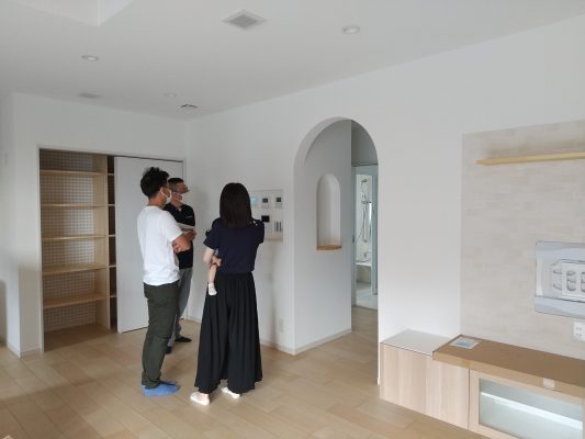 見学会後、補修工事と再クリーニングを終えて、お引渡しの日を迎えました。今日の良き日を梅雨の晴れ間が、一層良い日にしてくれました。