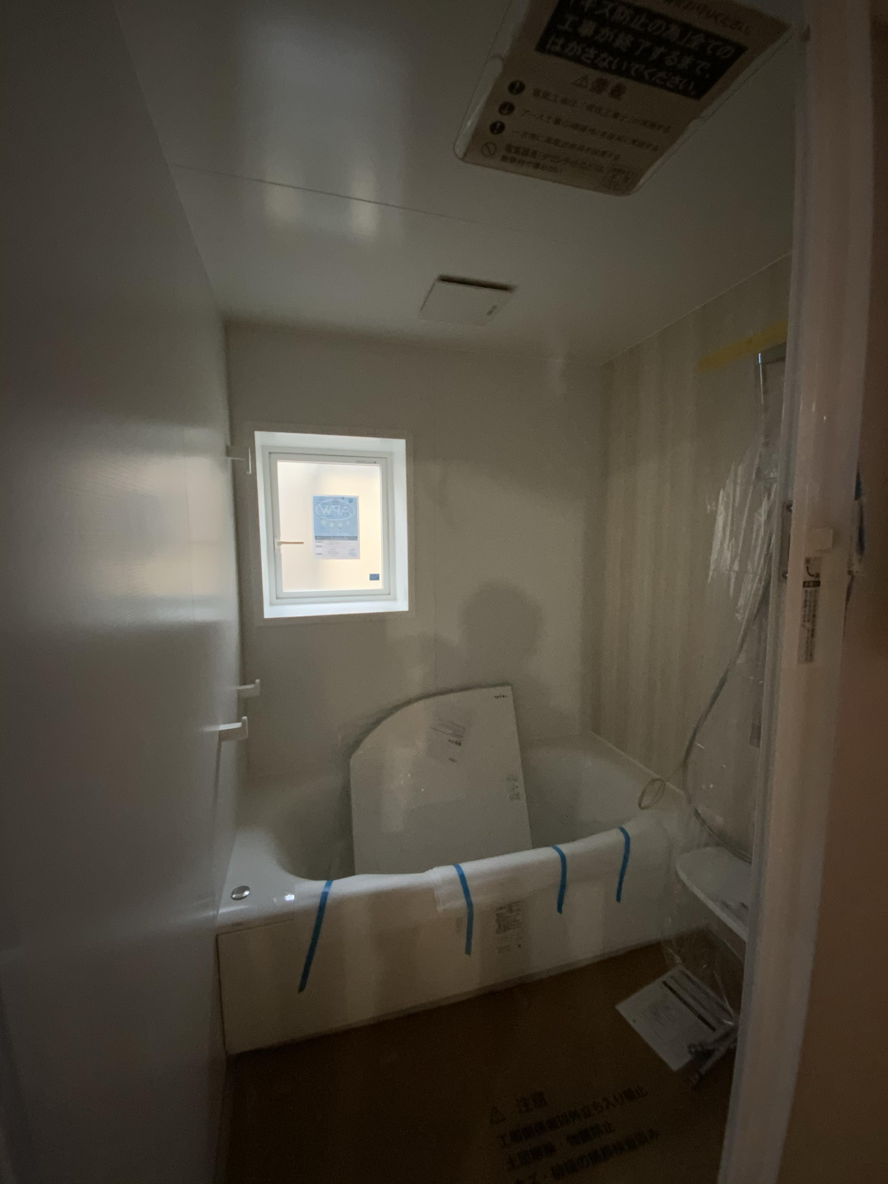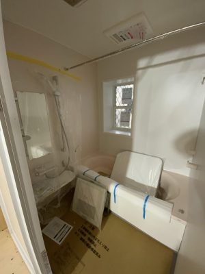 ユニットバスがh典棟梁が他の現場の棟上げの応援に行っている間に設置されました。今回はLIXILのアライズです。内部のプラスターボードを張る前に、ユニットバスは設置されますので、選ばれました設備品の中で一番最初に取り付けられます。ショールームに通われた日が懐かしいですね。