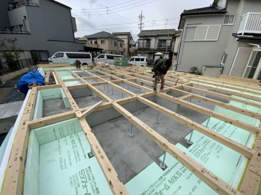 t様邸は基礎の付加断熱をご採用いただきましたので、アリストッパーも設置されています。t様は、せっかくミノワさんで建てるんだから、良い断熱仕様で建てたいとの事で、予算の調整では断熱仕様は最後まで下げずにご採用いただきました。