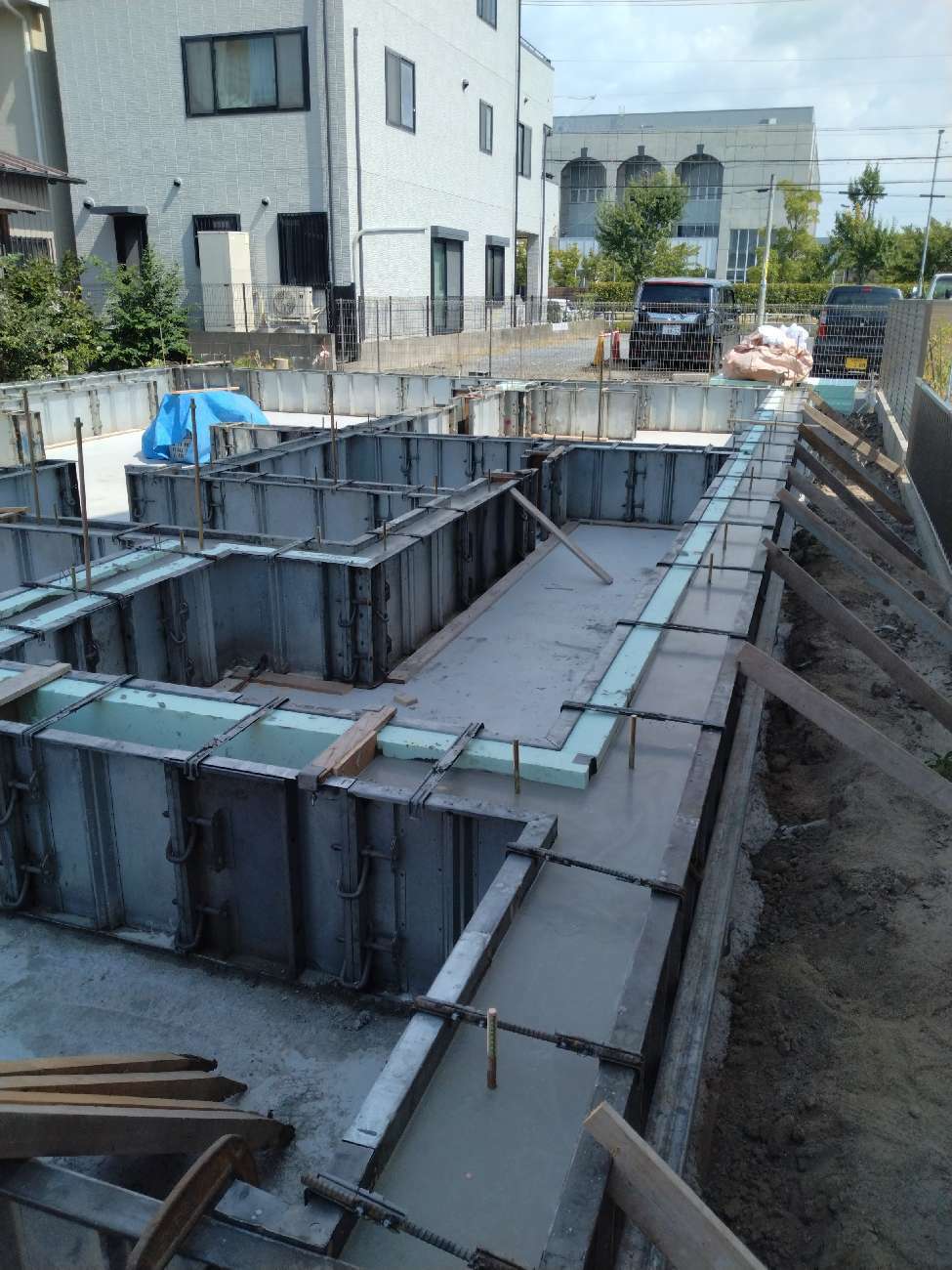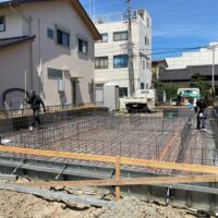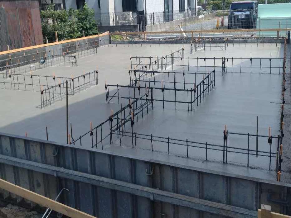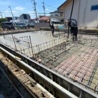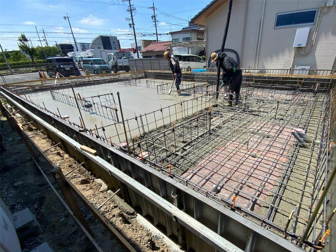 本日、底盤のコンクリートを打設しました。配筋検査が自主検査のため、検査日の調整に手間がかからず、お天気に合わせて工程も組みやすいので有難いです👍