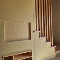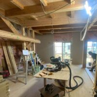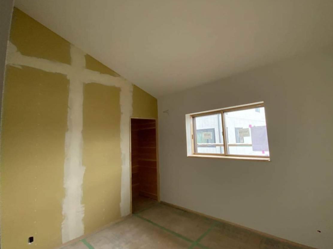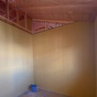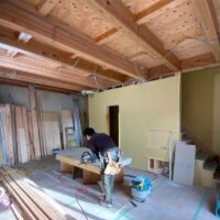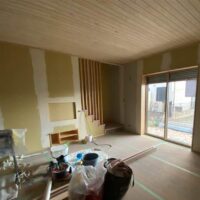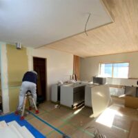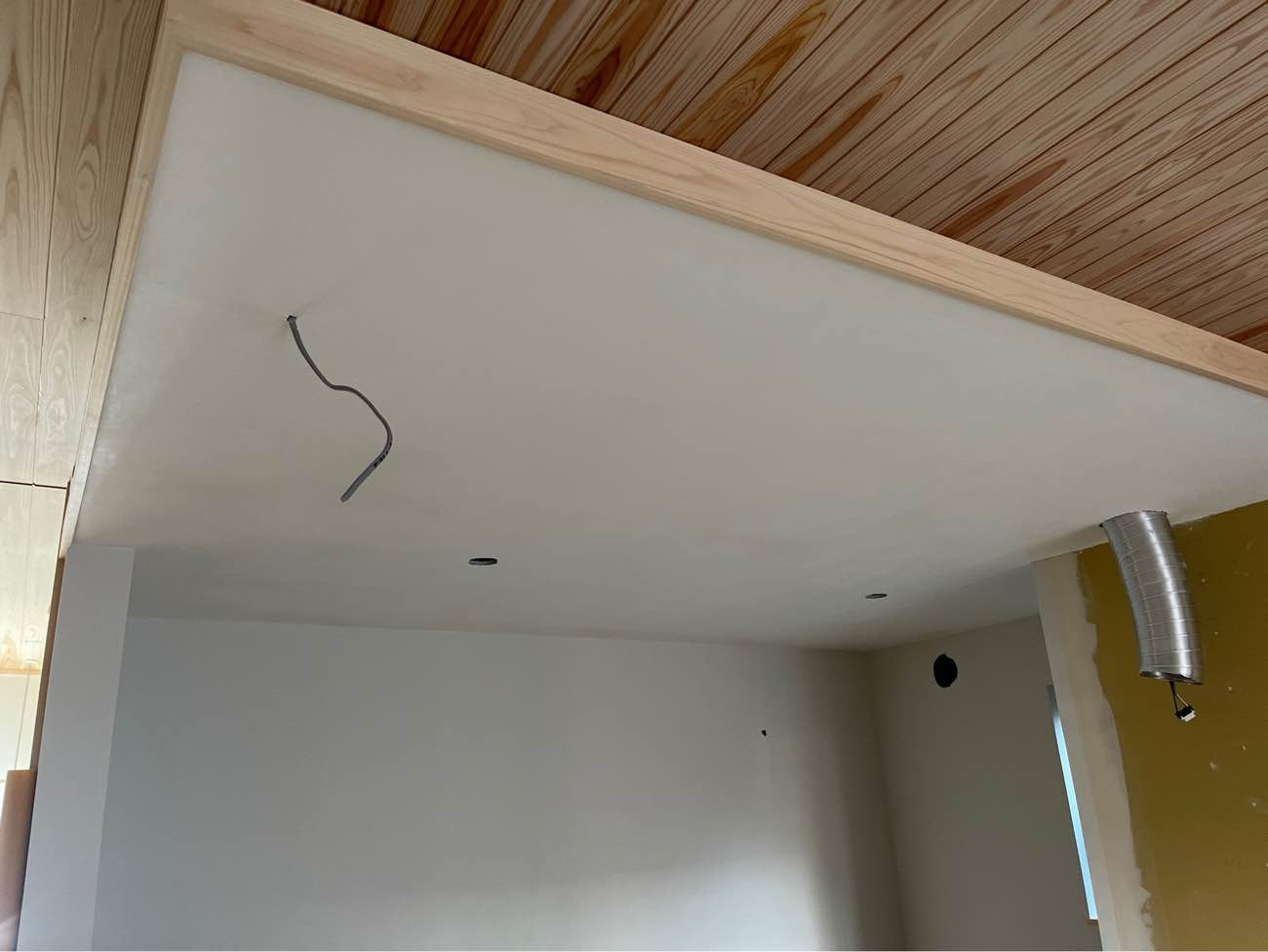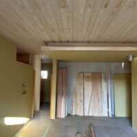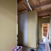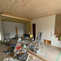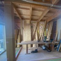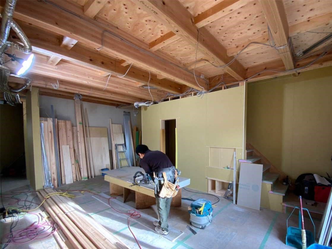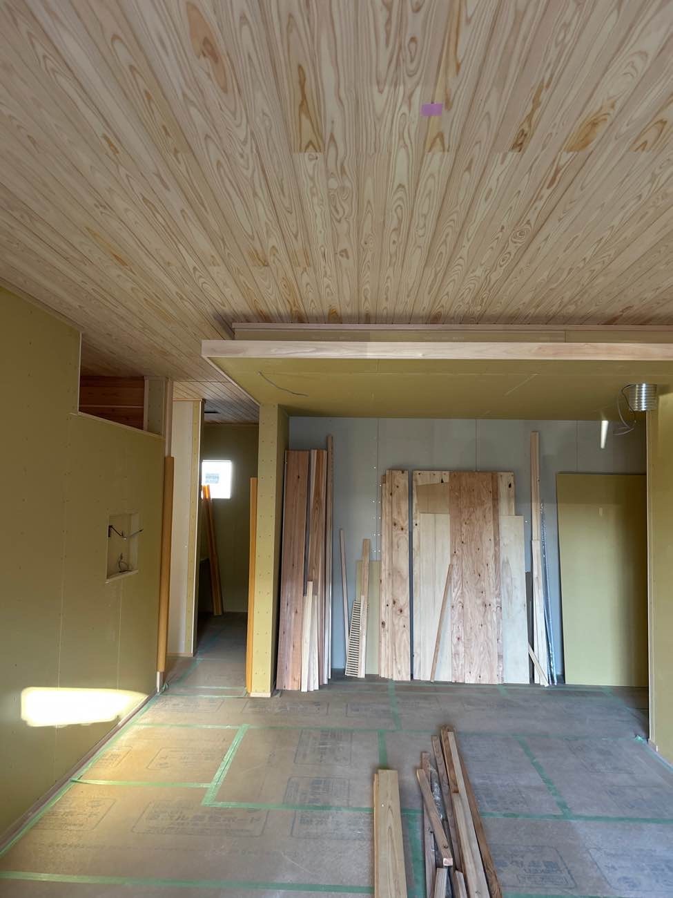 k保木大工さんも応援に入り、2階の残りのプラスターボード張りや天井羽目板張りが進んでいます。