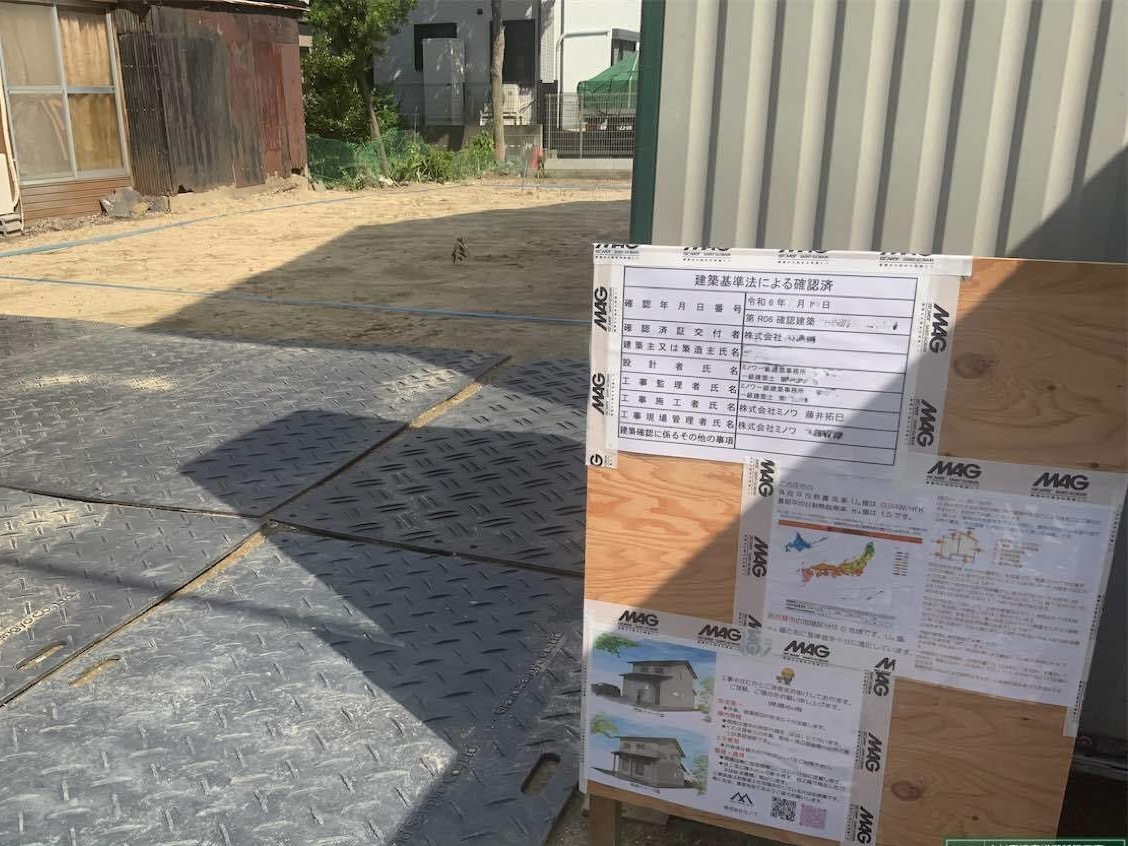 a監督お手製の確認看板も設置されました。職業柄、私の家の隣で行っている新築工事に確認看板が無いのが気になり、調べたところ看板が無いと建築主(施主様)が罰金を払わされるそうなので、要注意です。お手製の看板には、k様の家の性能について少し記載しています。