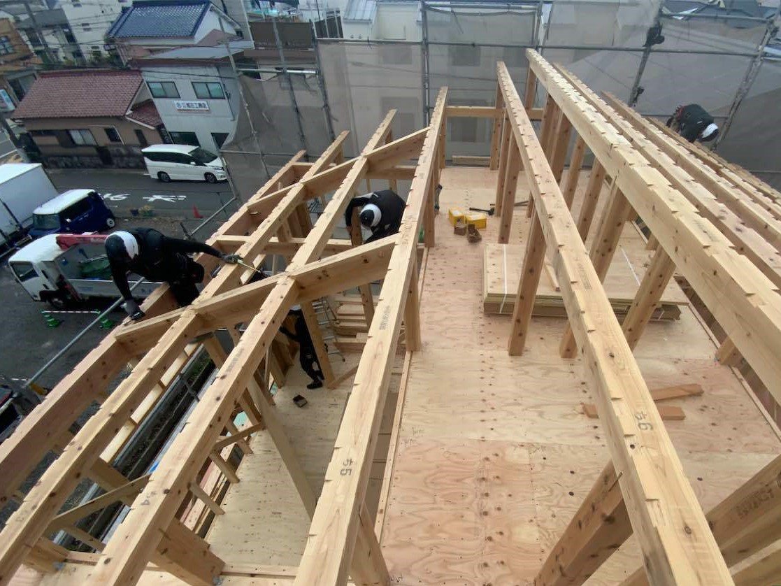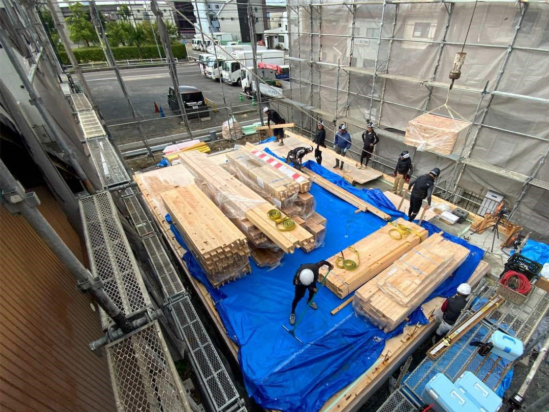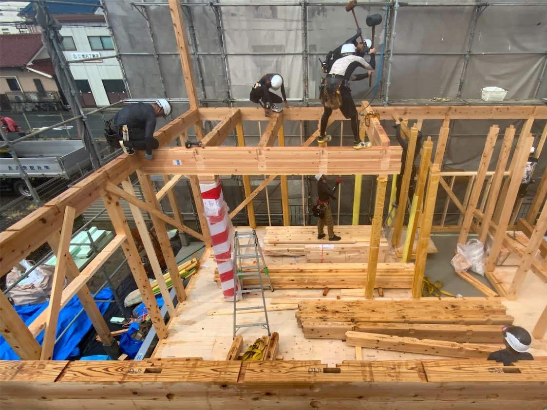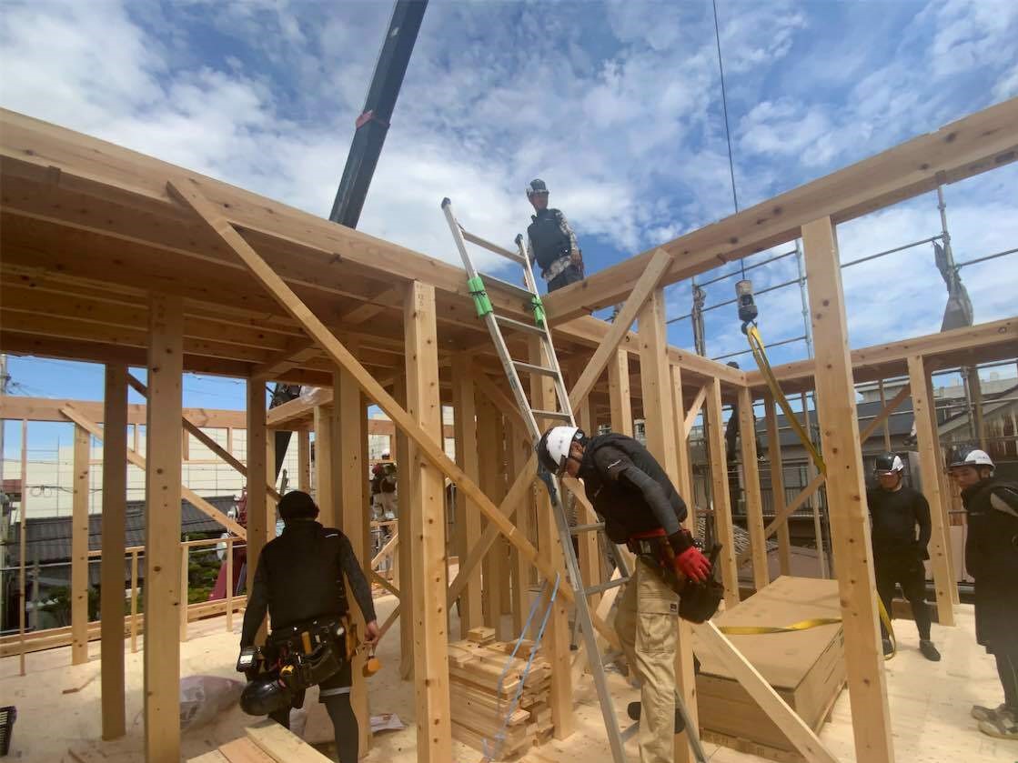 k様ご家族も建て方の様子を見て、「大工さん達、凄かったです!」と華麗なミノワ大工団の技を楽しんでいただけたようです👍