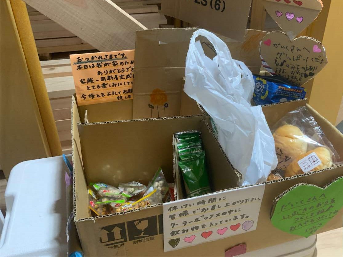 江南事務所では、朝は晴天でしたので安心していましたが、夕方から雷の音が南東方面から聞こえ始めたので、とても心配していましたが。無事に上棟式まで執り行う事ができ良かったです。k様、上棟おめでとうございます!かわいい差し入れもありがとうございました。大工さん達、喜んでいたと思います。これからは、s戸棟梁が、k様邸を造り上げていきます。よろしくお願いいたします。