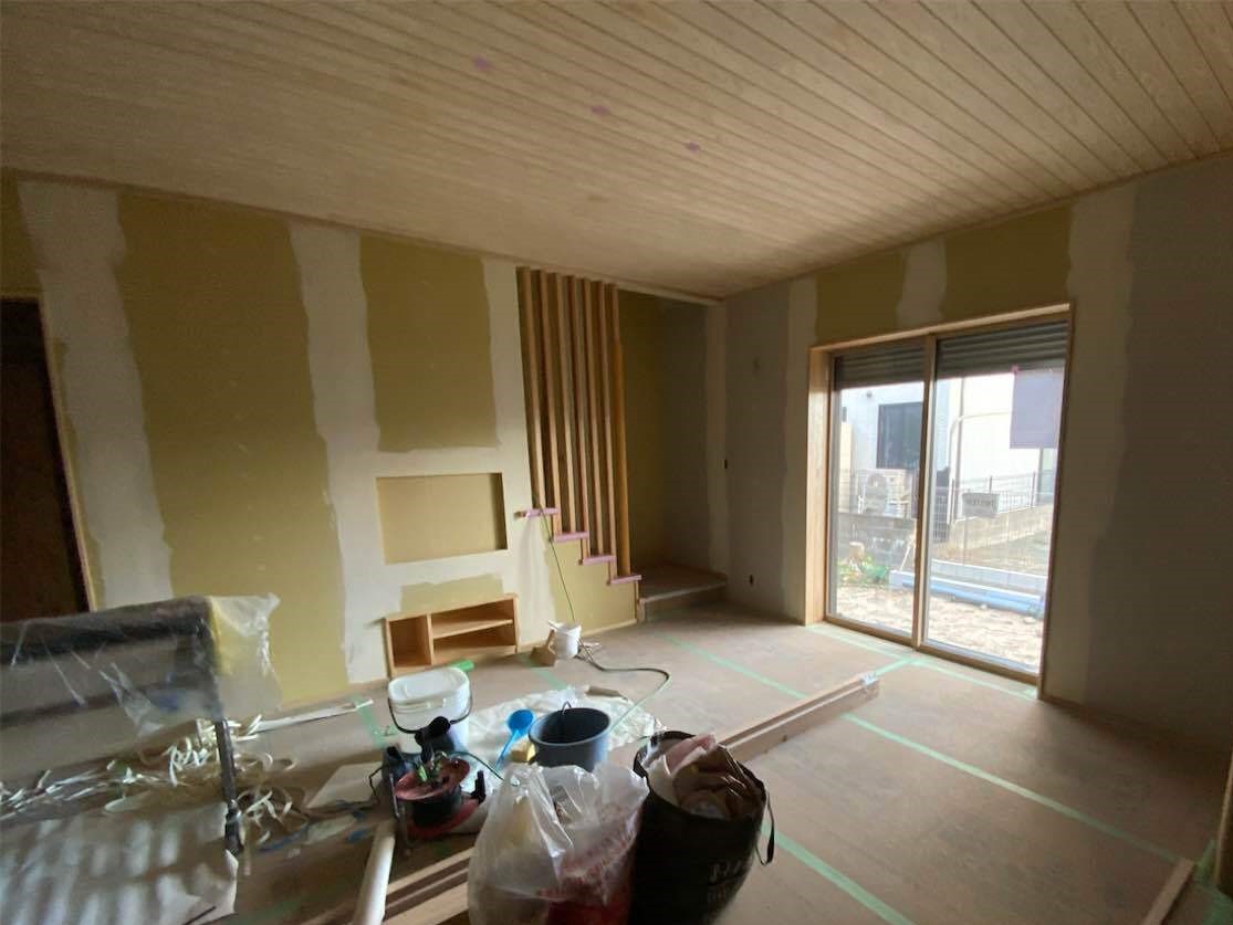 s戸棟梁の木工事が終わり、仕上げ工事に入りました。s戸棟梁、お疲れ様でした。ありがとうございました!kさんのお子さん達、サンタさんとs戸さんの発音が似ていて、24日にs戸さんがプレゼントを持ってきてくれると思っているそうですよ。プレゼント待ってま~す(笑)