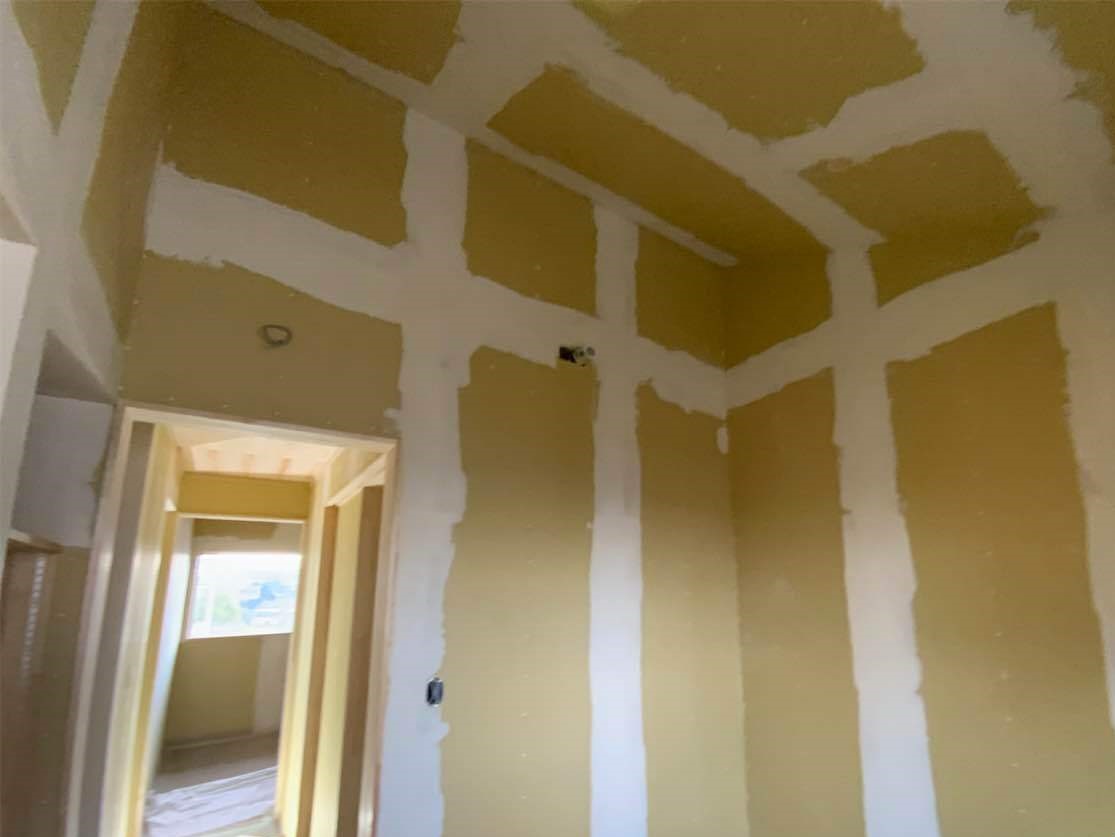 クロス工事に入り、s美さんがパテ処理からスタートしています。