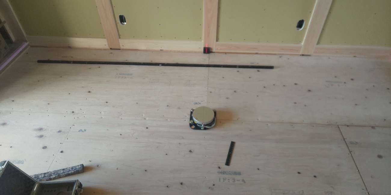 s戸棟梁、LDKの床張りを終えています。和室の造作加工にかかる準備でいろいろ採寸してみえる様子かなぁ~