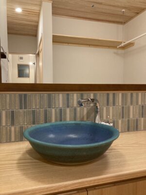洗面ボールが設置されました。タイルと器がお互いに引き立て合っている感じがします。
