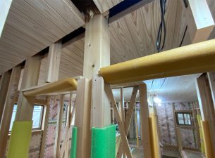 LDKの天井は杉の羽目板張としていますが、その一角に何やら未施工の部分が・・?
