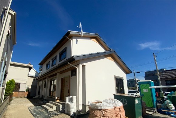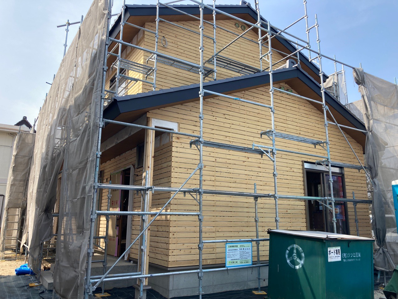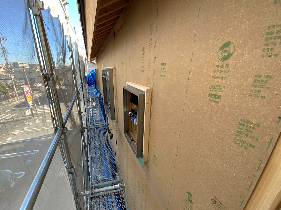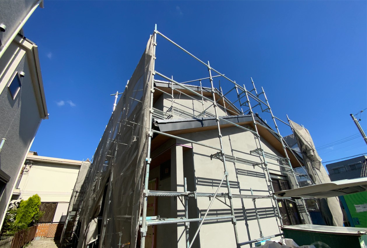 外部はモルタル下地が完了し、乾燥後漆喰を施します。