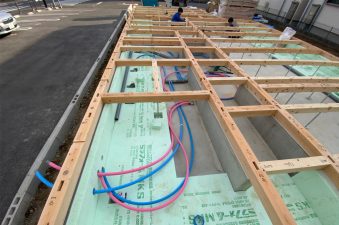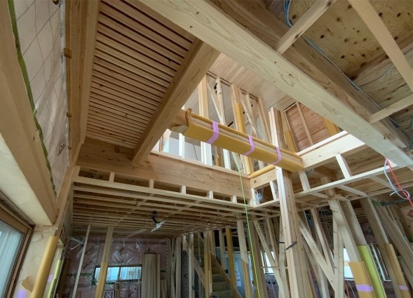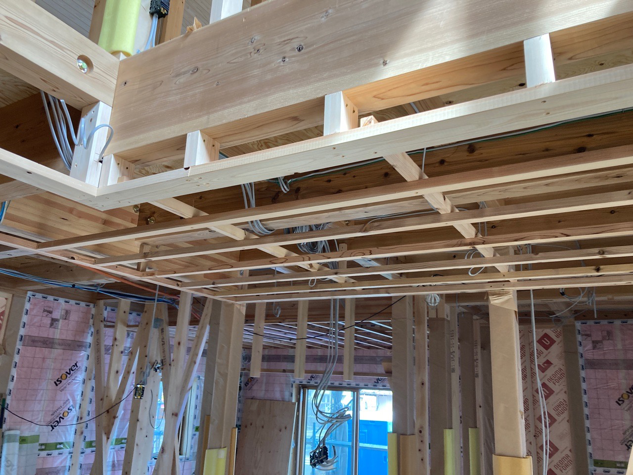 この天井未施工の真下部分にはキッチンのガスコンロが設置される予定です。