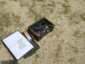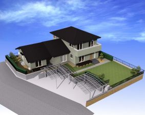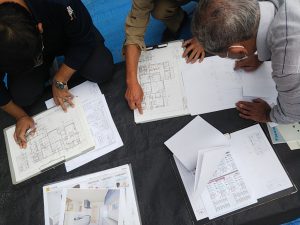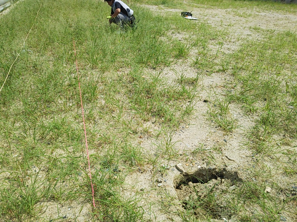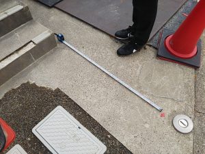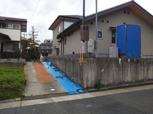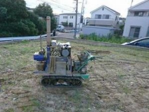 地盤調査を行いました。今回は敷地も建物も広大なため、測定ポイントも数か所増やしての調査です。敷地そのものが道路面より擁壁分高いところにあるので測定機を上げるのにも一苦労だと思います。