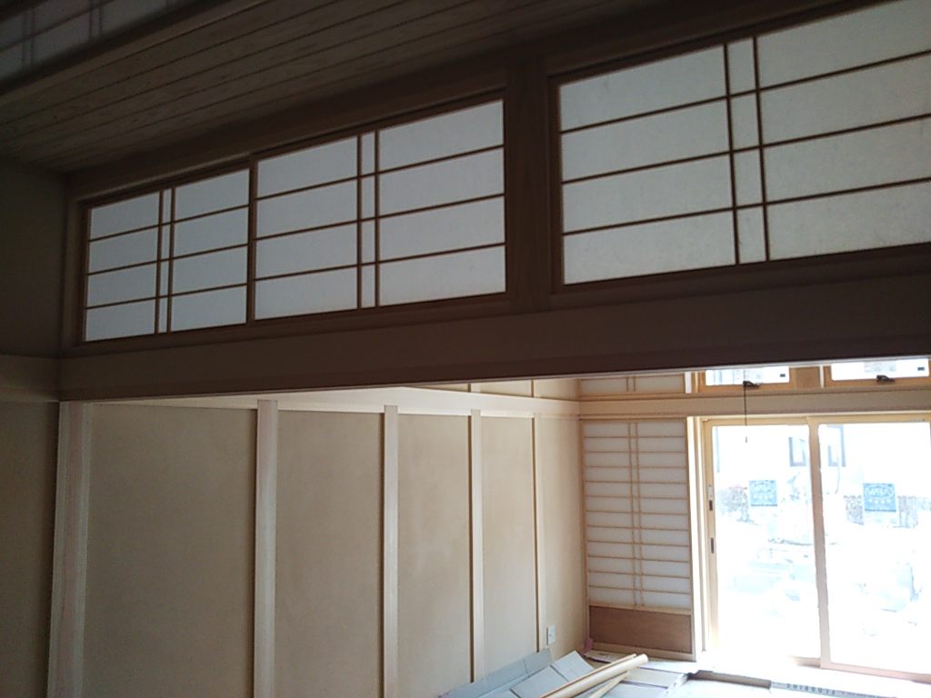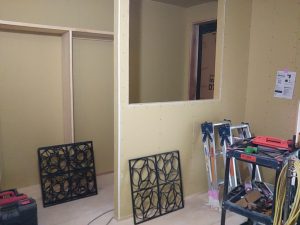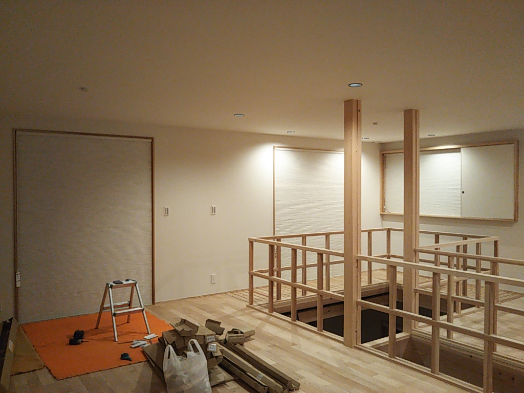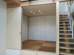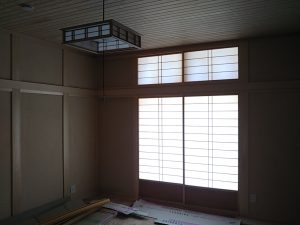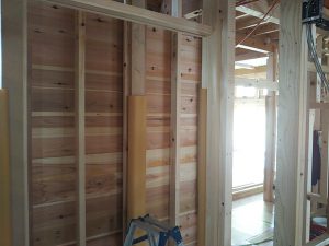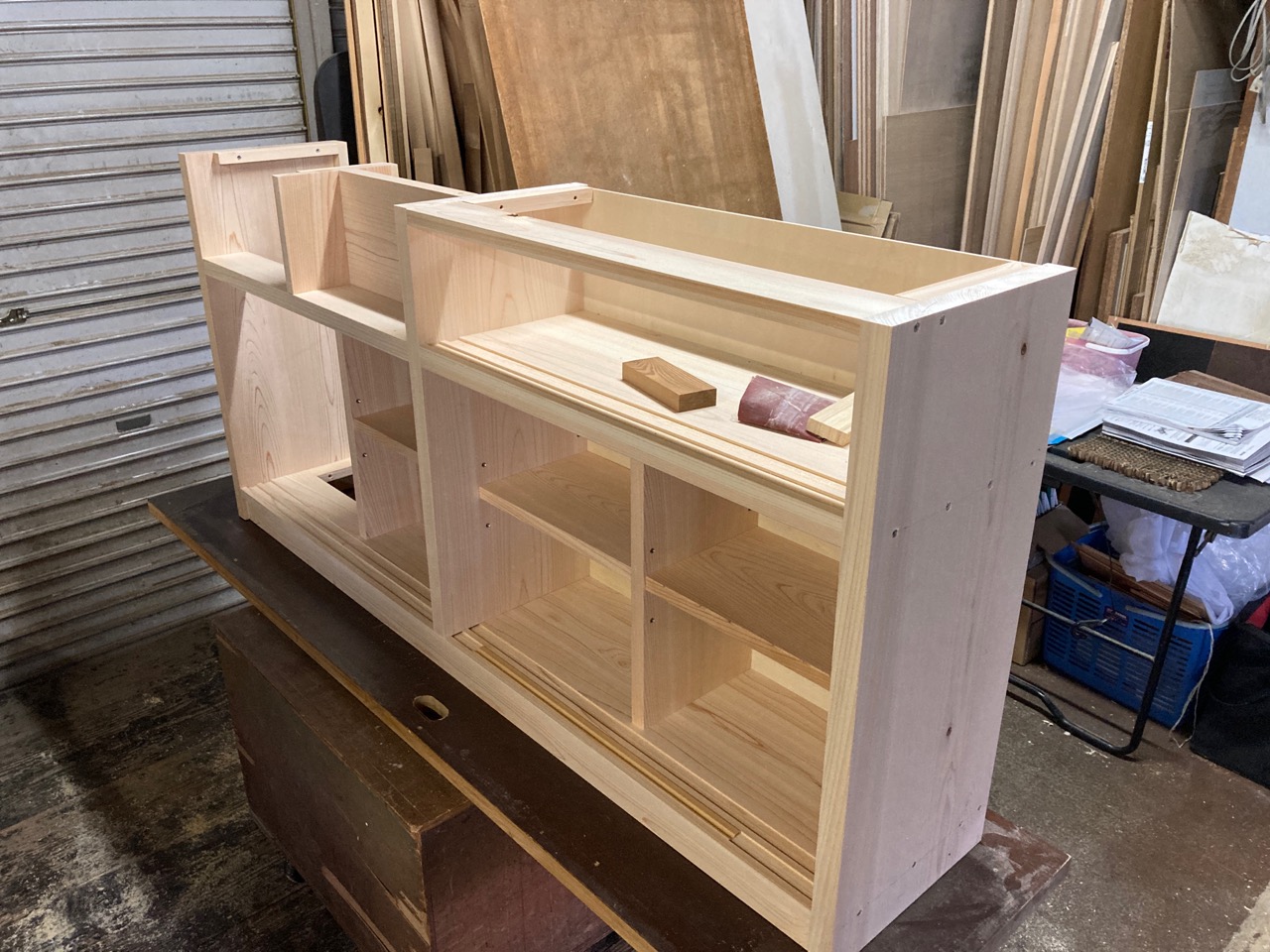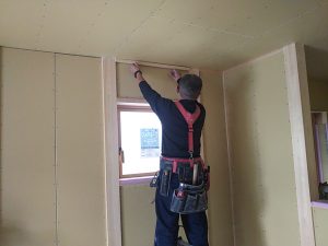 収納の建具を建て込み。y様のご希望で和風の建具を製作して建て込んでいきます。