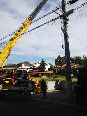 本当は先々週くらいにうかがう予定でしたが雨天に次ぐ雨天で順延また順延。本日はすっきりと晴れて施工日和、というわけにもいかず、熱中症指数メーターが振り切れるくらいの、いわば自然災害とでも言うべき暑さ。(『熱さ』と書いても良い)f井電気のhさんとフラフラになりながらの作業でした。