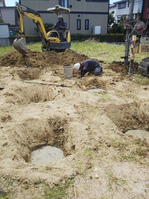 この作業を約50本分行い、住宅全体を支える支持杭群をつくり上げます。