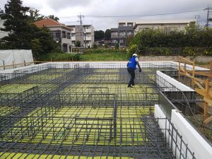 それにしても今回の基礎はデカい。これだけの鉄筋で総重量はいかほどになるのでしょうか。すぐにコンクリートが打設されて見えなくなってしまいますが、いつもながら整然と等間隔で並ぶ鉄筋に美しさを感じます。