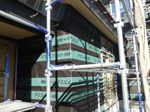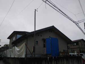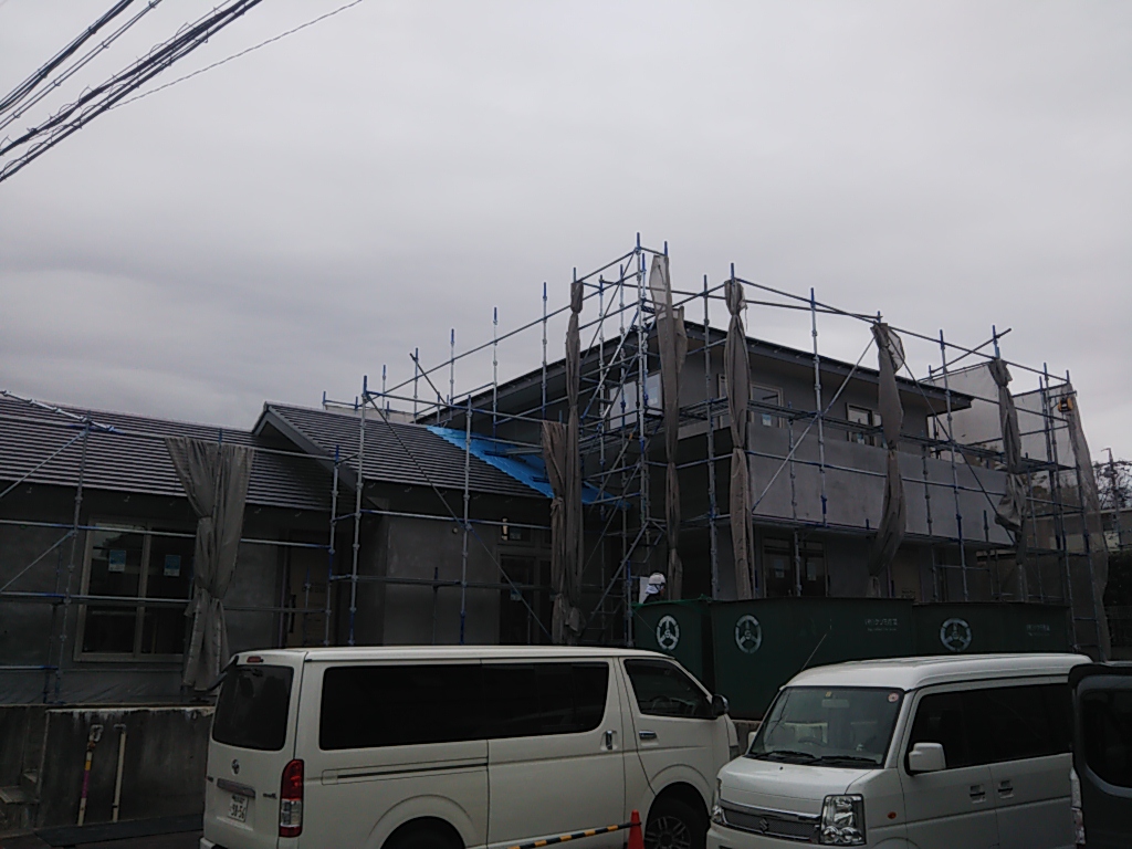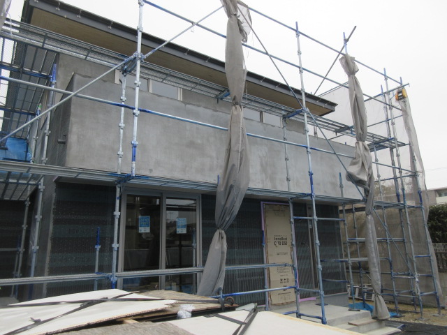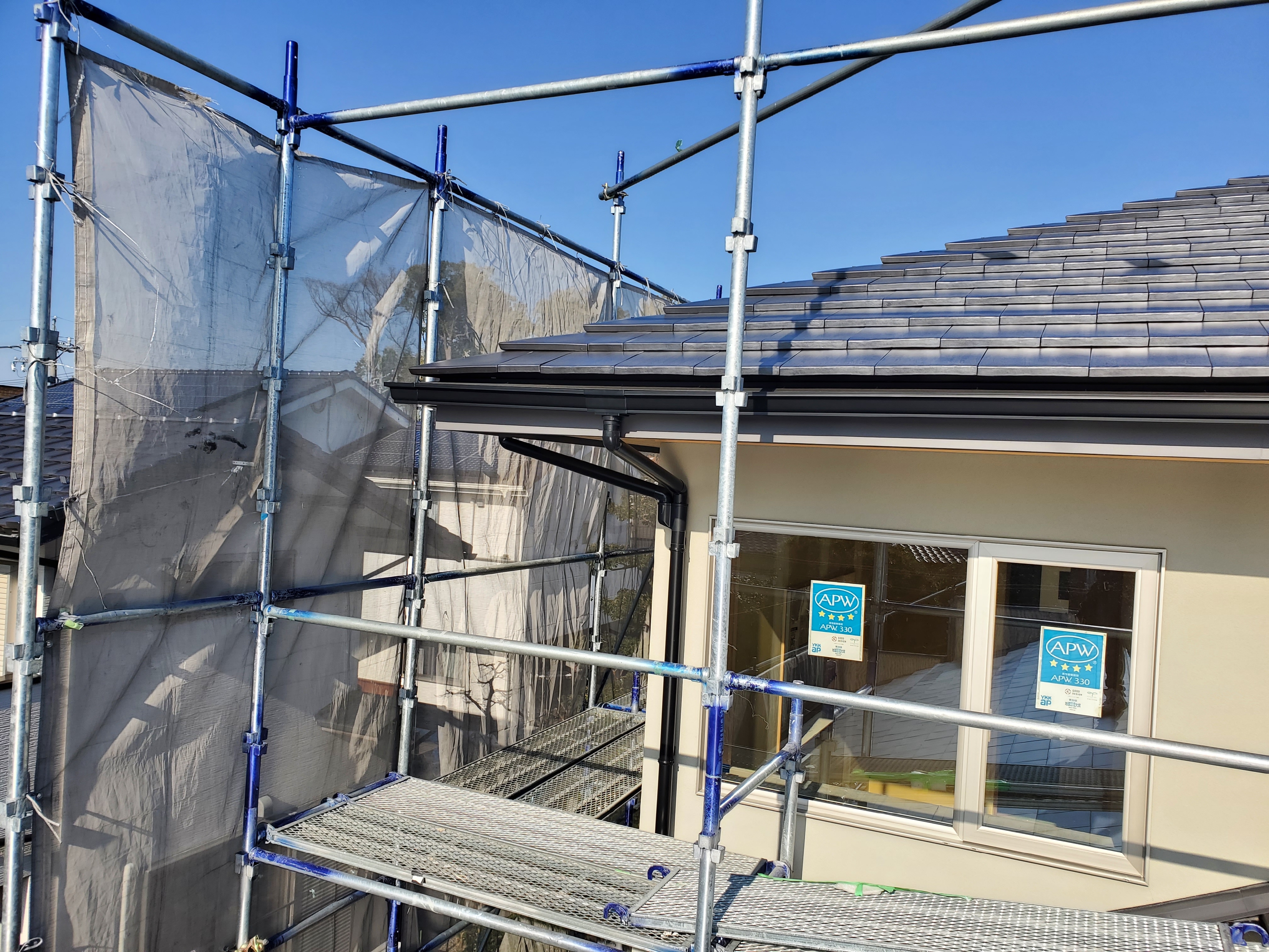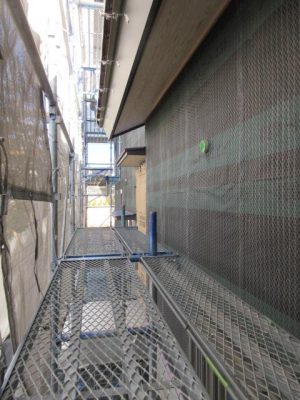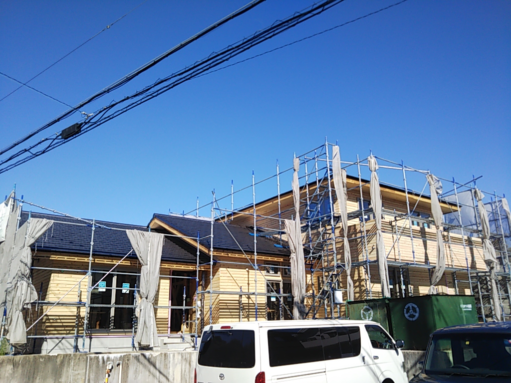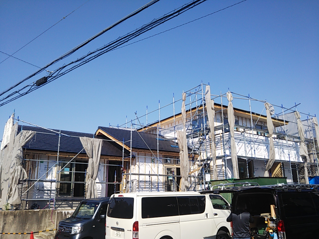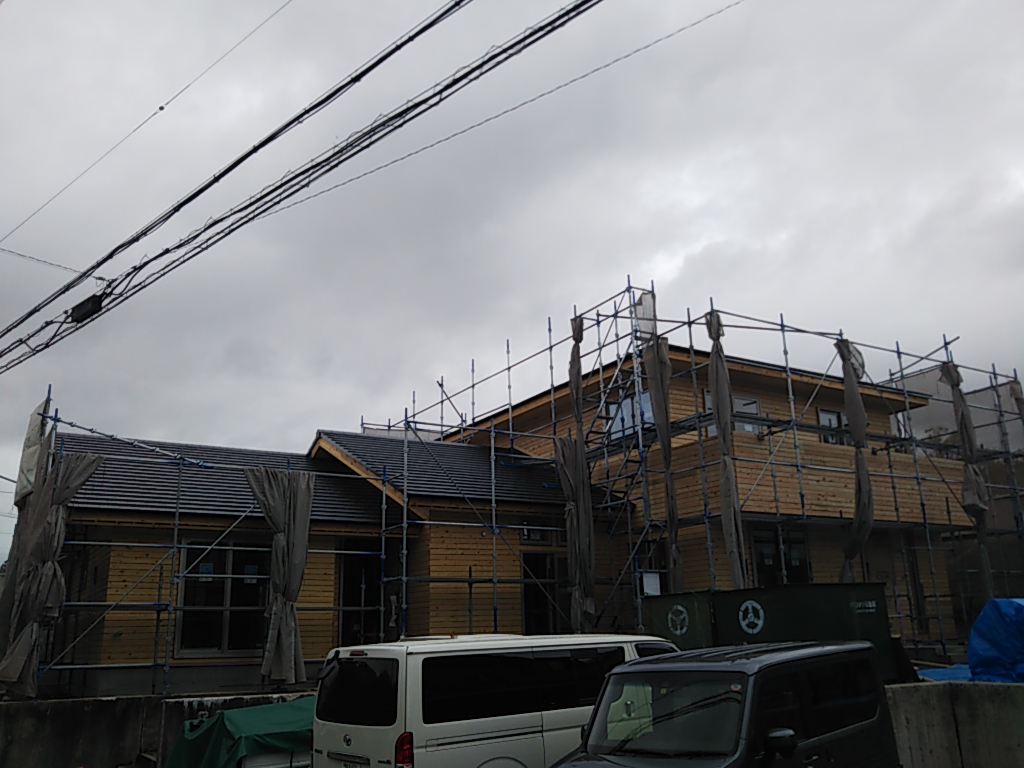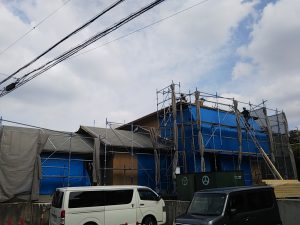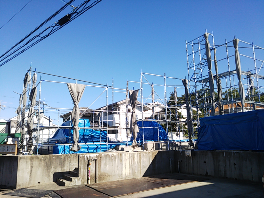 台風も台風で天気予報では列島直撃と思いきや太平洋側へそれていく始末です。先週末大慌てで足場のシートをたたみ、強風に備えましたが、長雨が降るばかりで拍子抜けです。(現場としては風が吹くよりはありがたいのですが)本日は残暑の中めくったシートを元通りにする作業です。
