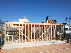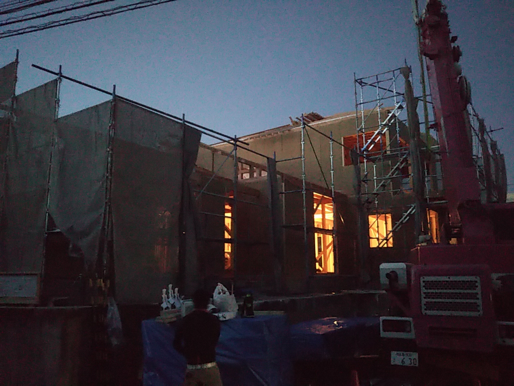 上棟作業は明日にも続きます。まずは無事に上棟式を迎えられました。y様本日はおめでとうございました。