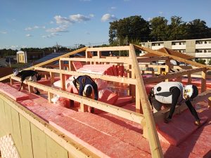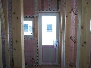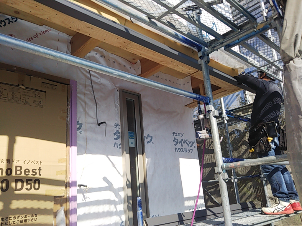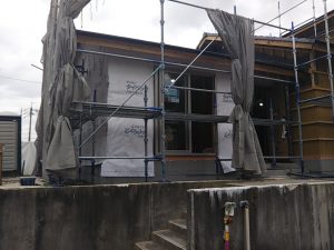 屋根工事が完了し、窓が取り付くと外見が『住宅』っぽく見えてきます。