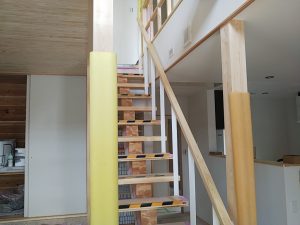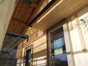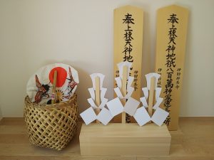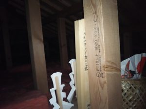 上棟式で奉られた棟札や幣束、かごなどを小屋裏に安置しました。工事の安全とy様ご家族のご健勝ご多幸を祈願したものです。工事の方は何とか終わりましたので(まだちょっと残っていますが)あとはお住まいになるy様ご家族を末永く守護してくださいますよう。