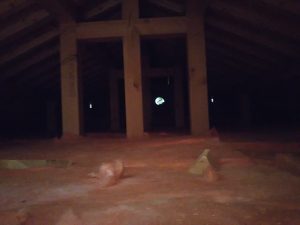 この小屋裏、だいぶ高いところにあり、長い脚立を持って行ったつもりでしたが胸くらいまで入り込むのがやっとでした。本来なら正面に回り込んで撮影したいところでしたが。