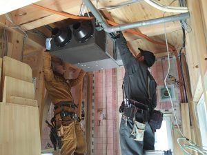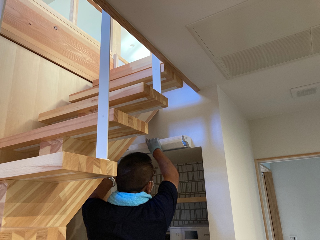 比較的ムリな体勢で作業するため難儀しますが、何とか換気扇取付工事は完了しました。