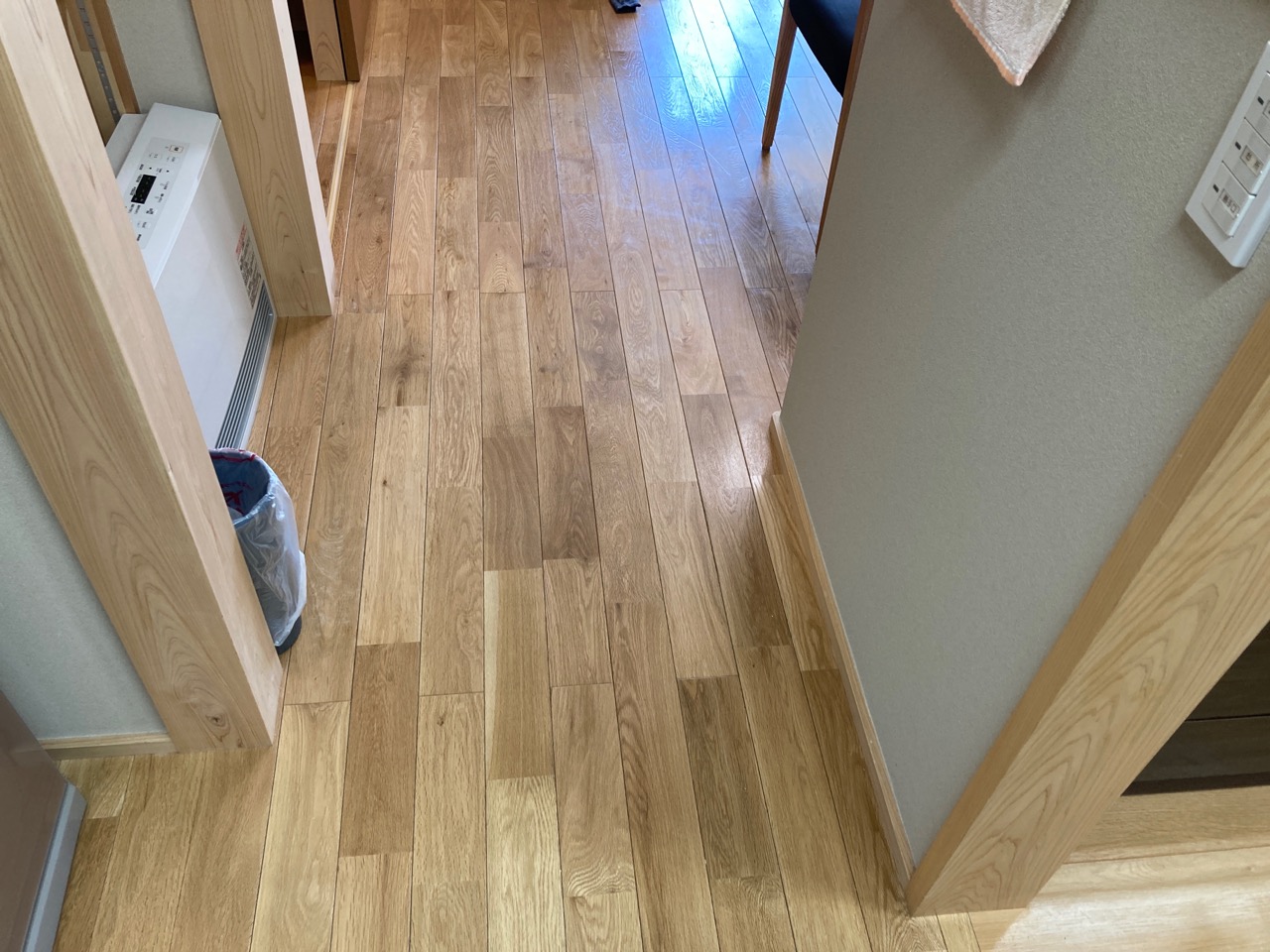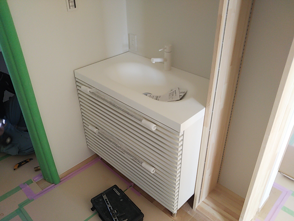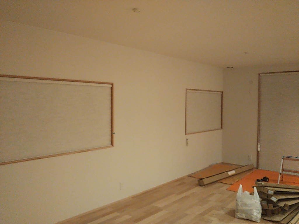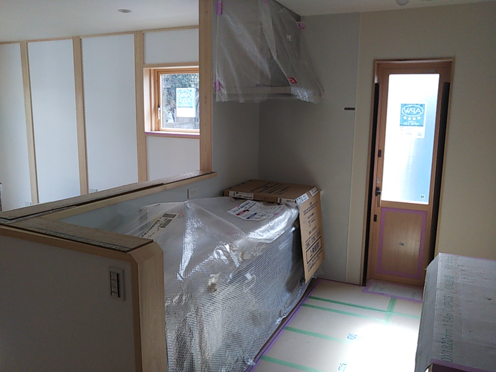 y様が購入された家具が搬入されました。リビングにはソファー、ダイニングには食卓が設置されるとやはりグッと部屋らしくなります。最近ではリビングには南側には採光掃き出し窓、他方にはダイニング、そのまた他方にはタタミコーナーが空間としてつながる、という間取りを造る事が多く、結果としてソファーがどの壁際にも置かれず部屋の真ん中ほどに置かれることが多いのですが、こうして壁を背面としてソファーを置くと人間の心理として何となく落ち着くな、と感じるのは私だけでしょうか。