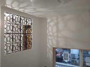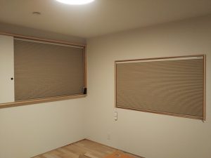 周囲の枠金物を固定して、本体を取付ければ完成です。エアコンで空調するのも一手ですが、換気を兼ねて通風によって涼をとるのも良い季節です。