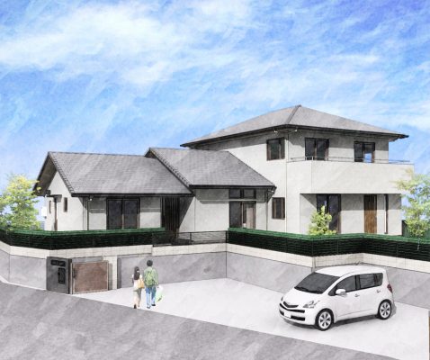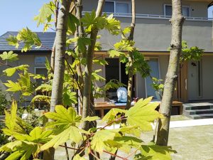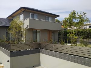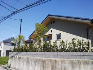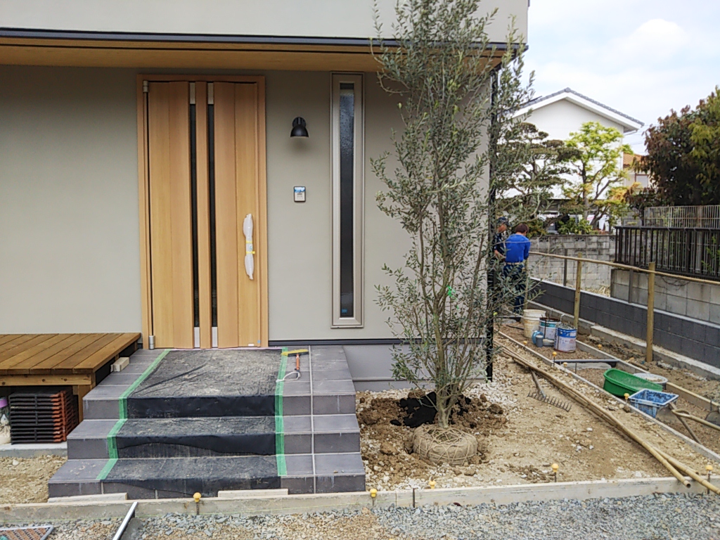 y様ご知人の社長さんによる植栽工事も完了しており、建物にマッチした風情を醸し出しています。工事はひと段落付きましたが、まだまだこれからお世話になっていくかと思います。(昨年末にお願いしてある石川県の九谷焼のタイルもまだ仕上が残っています。)まずは無事にお引渡し、y様ありがとうございました。