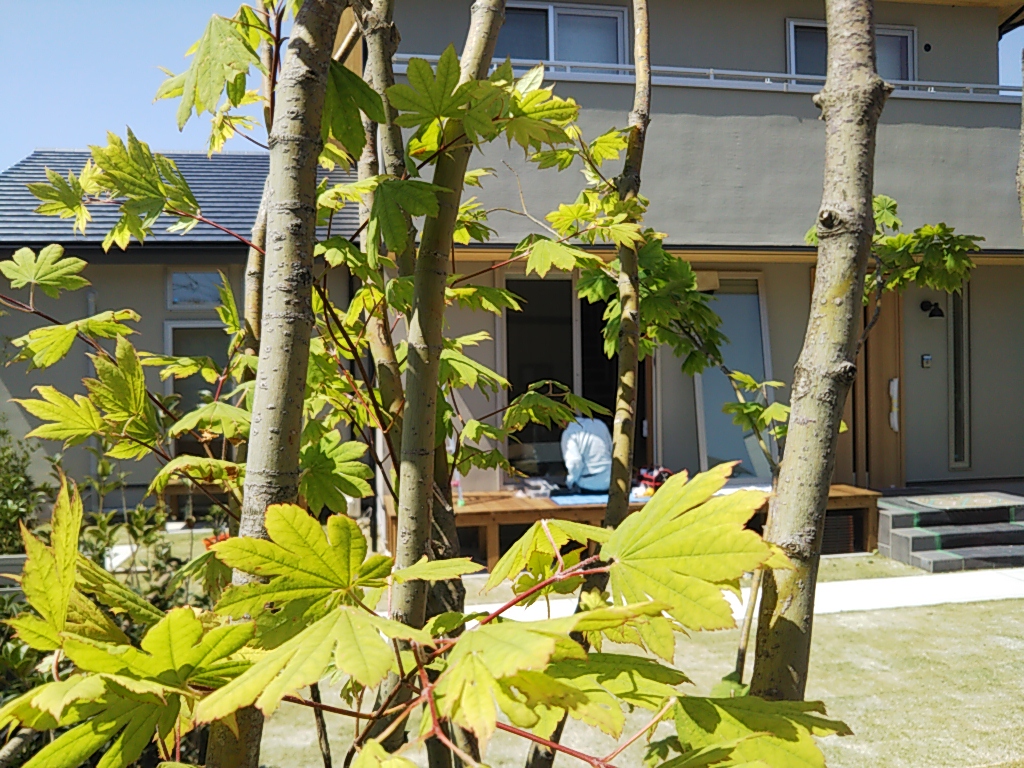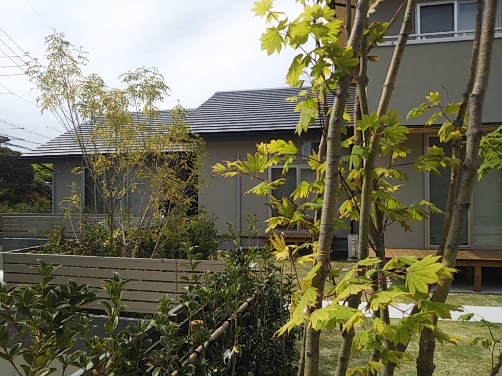 相変わらずy様邸の庭に配された樹木やグランドカバーは晴天に映えて美しい。