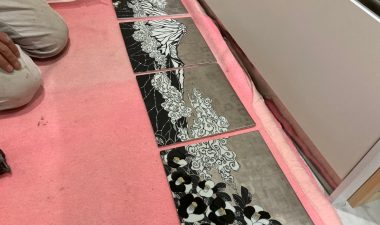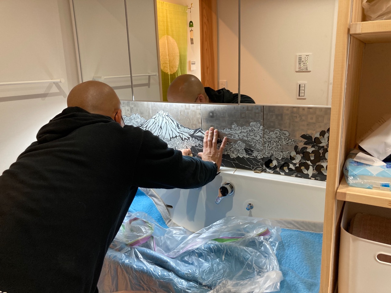 一昨年の年末にy様と一緒に石川県の陶芸ギャラリーまで訪ね、制作と絵付けを依頼してきた九谷焼の陶板を貼る時がいよいよやってきました。完成、配送は昨年の秋にすでにされていたのですが、y様にとっては縁起物のこの陶板、施工する時期も慎重に選び、年回りの都合上節分が開けた本年2月に施工する事になりました。