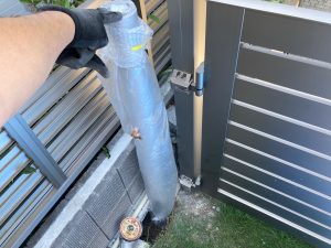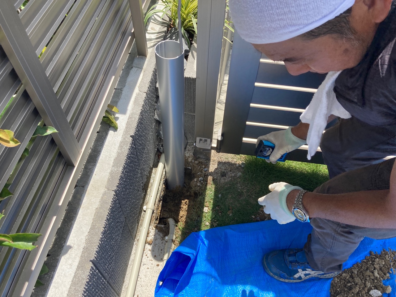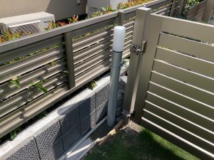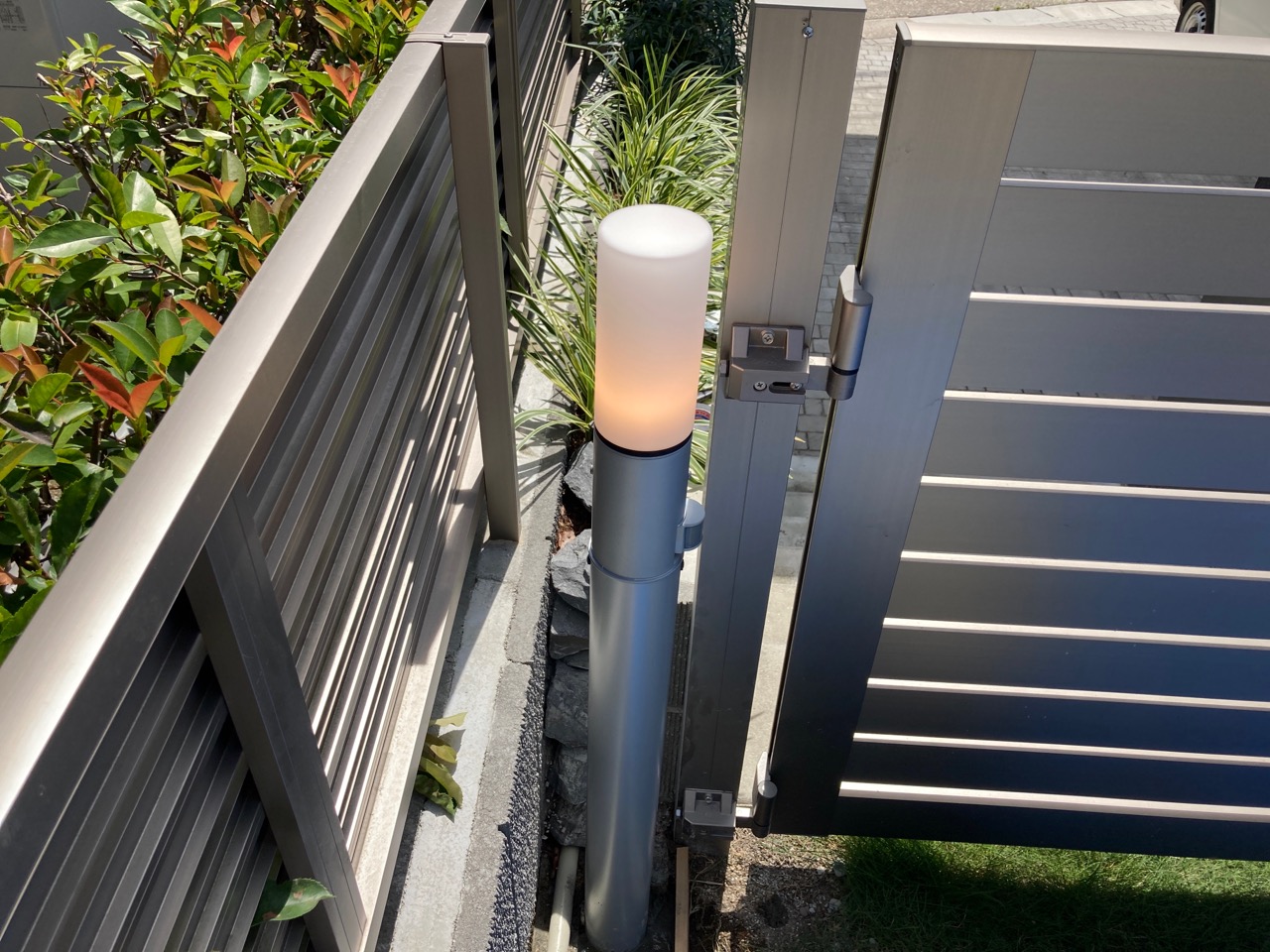 庭の反対側の出入口にセンサー付きのエクステリアライトが建てたいという事で取り付けにうかがいました。