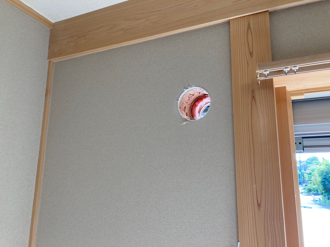 なるべくなるべく目立たないように試行錯誤の結果、最小限の穴あけのみで配管と配線を行います。