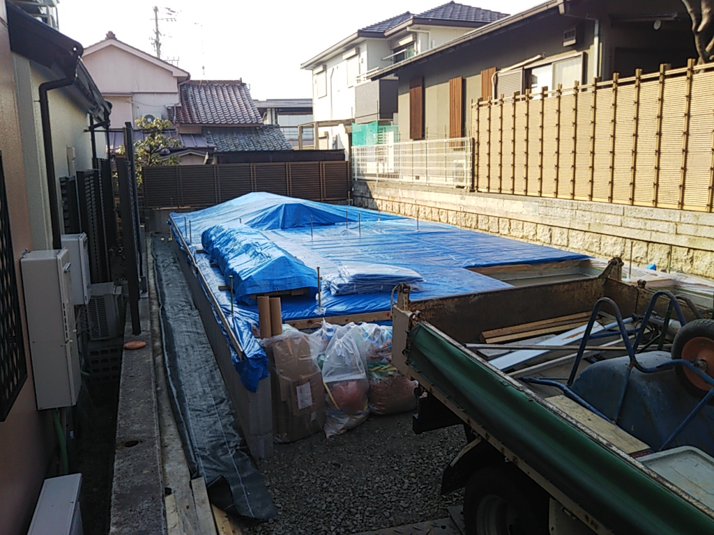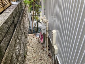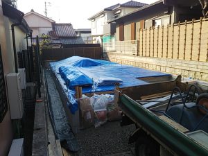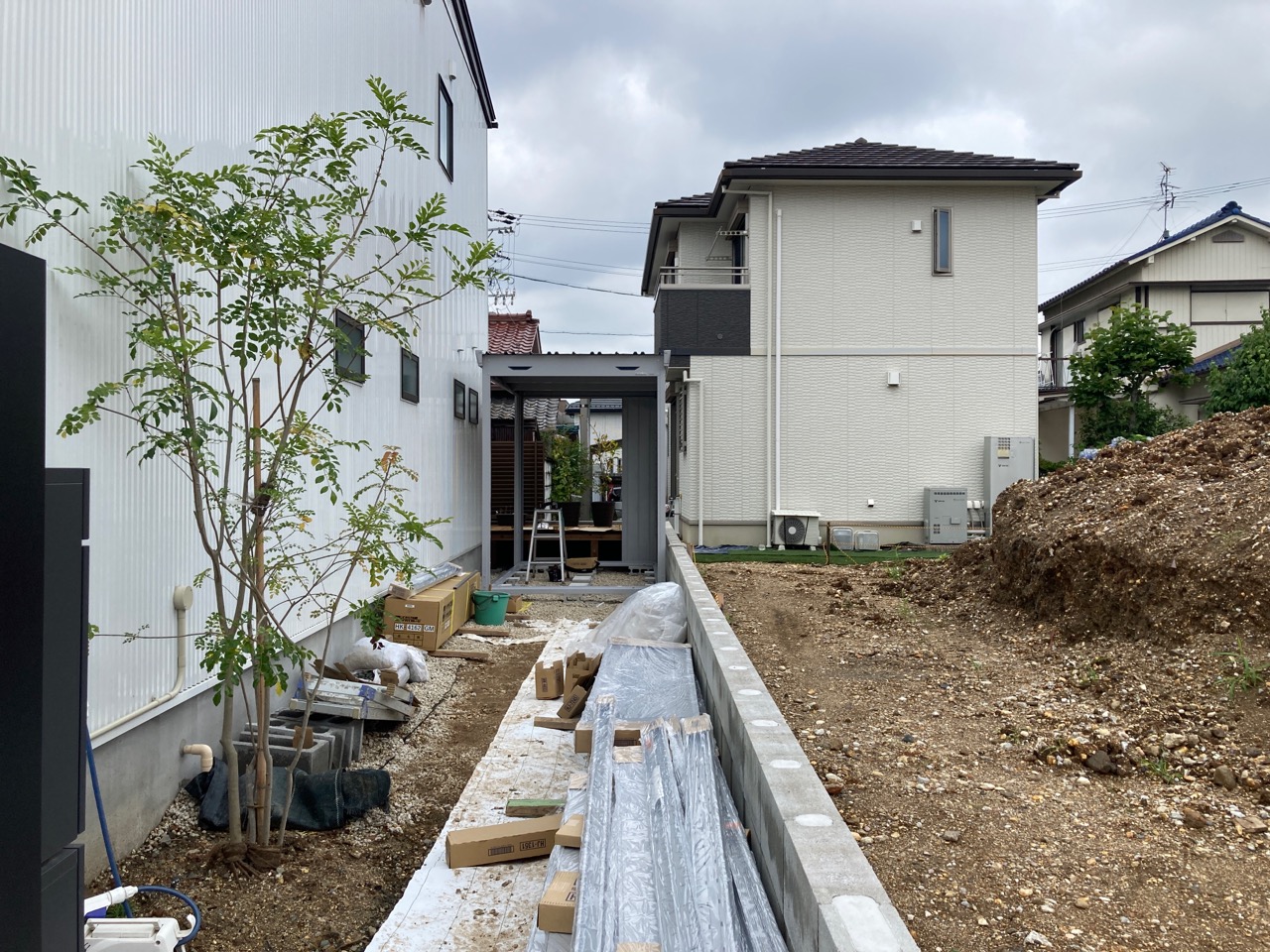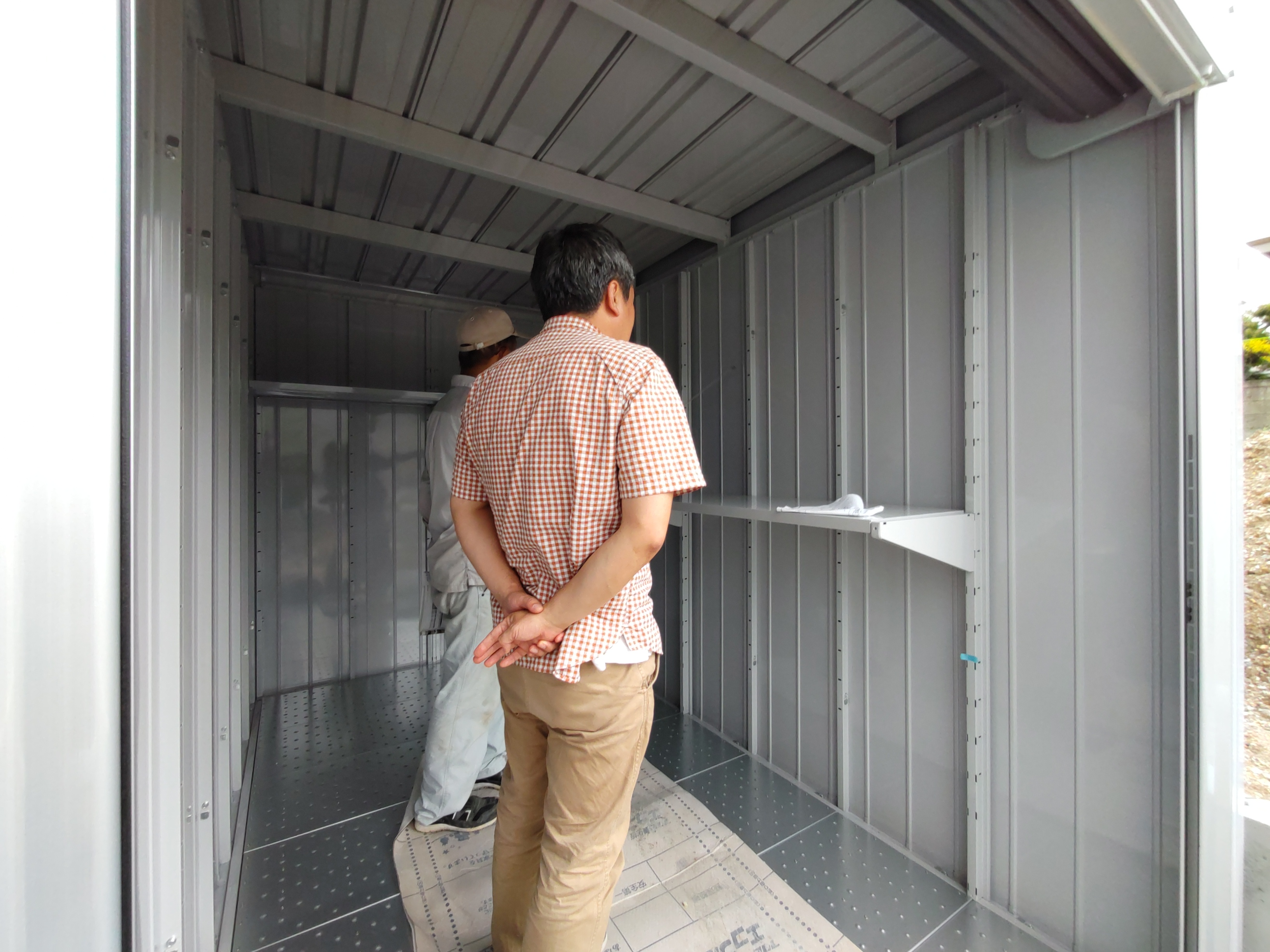 o様のお隣のお屋敷が解体され、跡地には分譲住宅が建設される予定との事でした。その住宅のサイズ等により、わずかに土地が余るため、今回o様が購入されそちらに倉庫を建てるかどうか、という話になりました。狭小地につき、収納量も潤沢ではないので少しでも外にできれば良いかと思います。