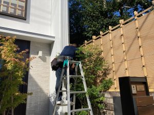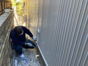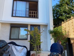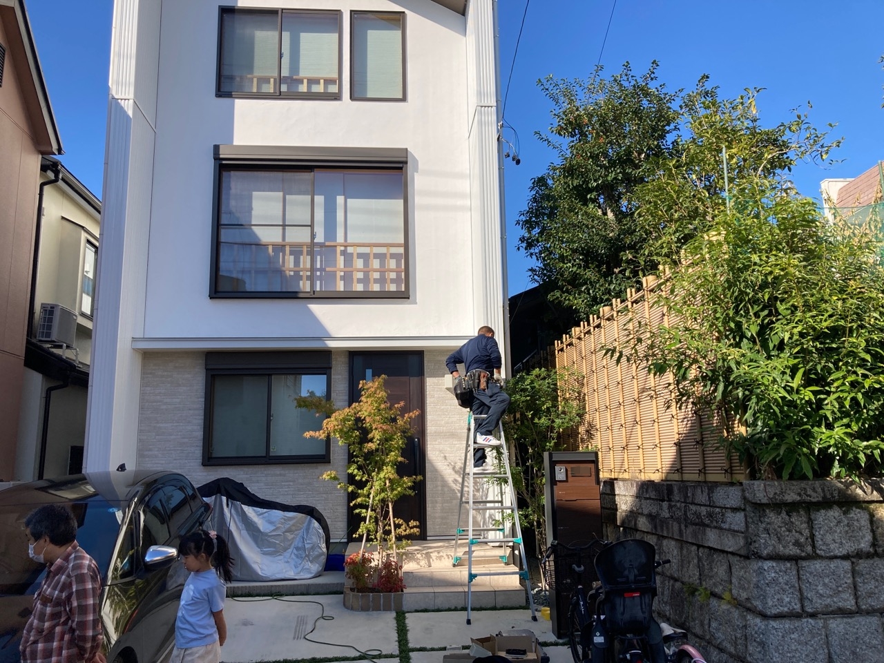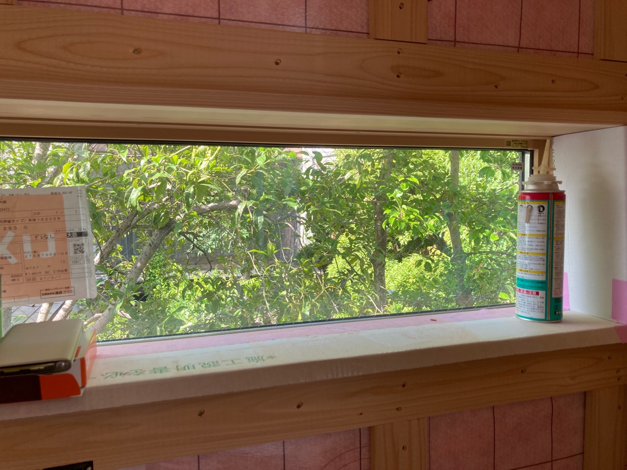 本日は風もなく穏やかな天候ですが、9月末としては暑く、近くの神社では蝉が鳴いています。この窓は西側に面しており、午前中の作業は建物の日影で行えたのでだいぶ涼しくできましたが時間が経つにつれどんどんと日影が無くなってきますので時間との戦いです。