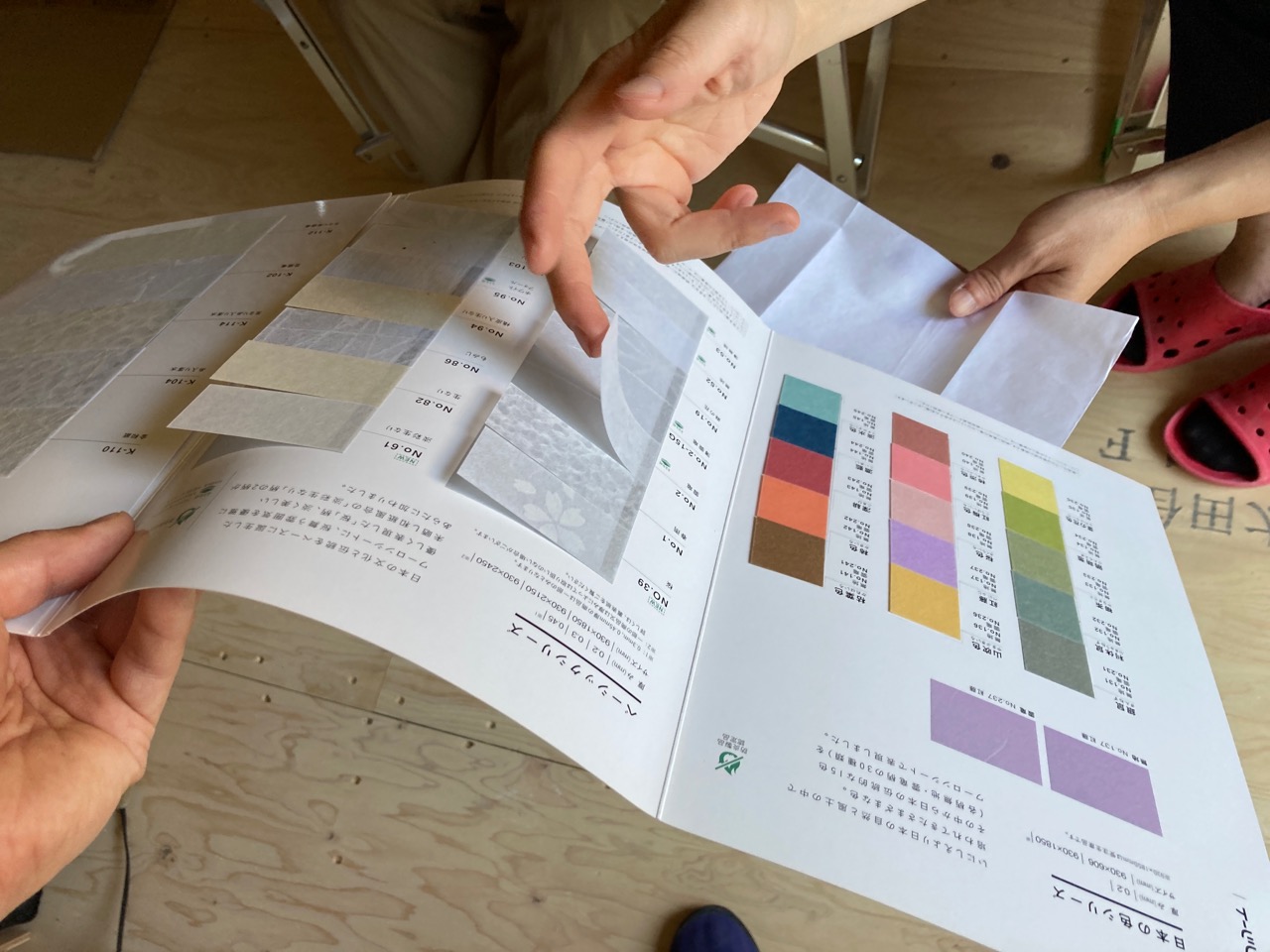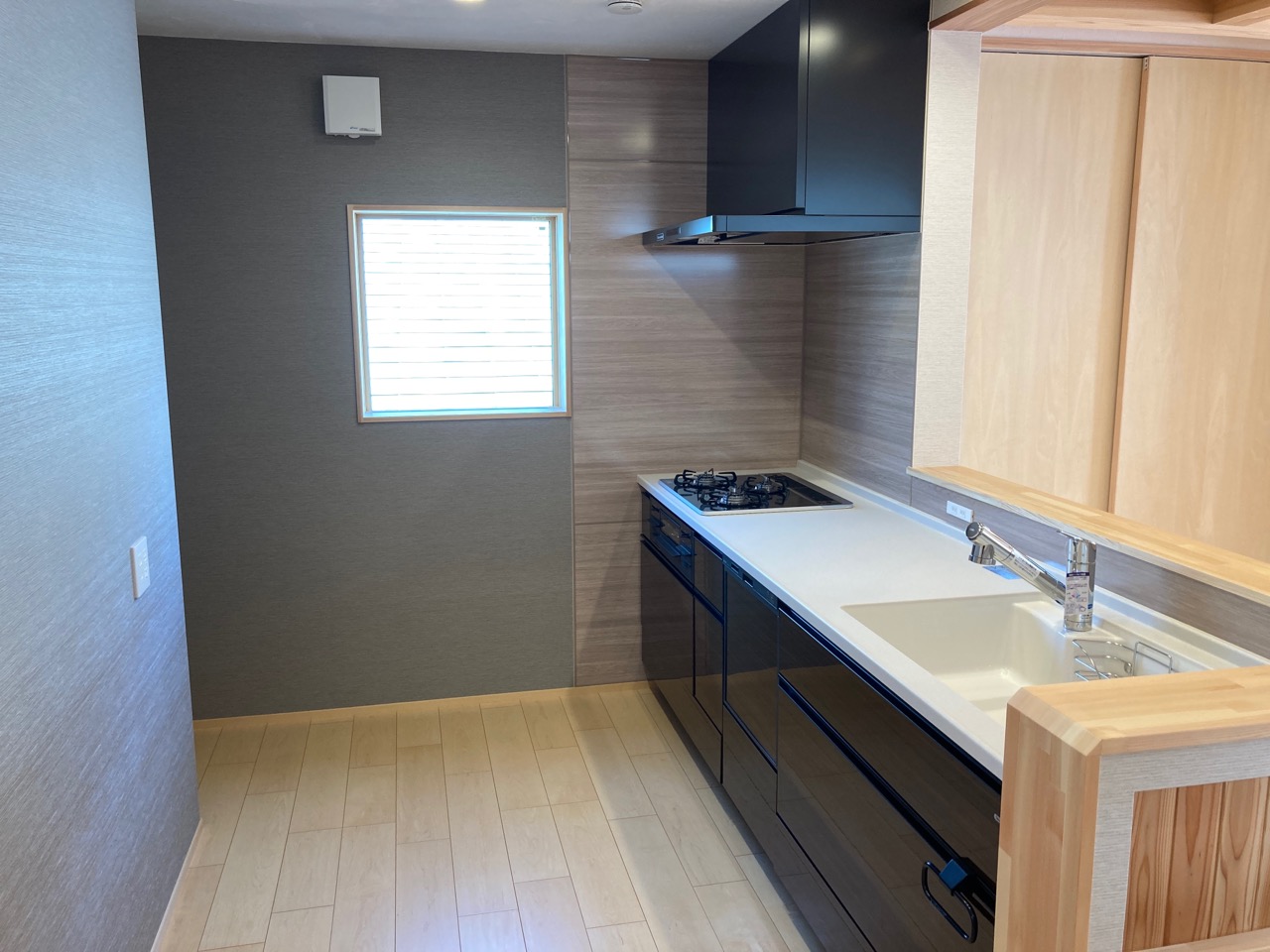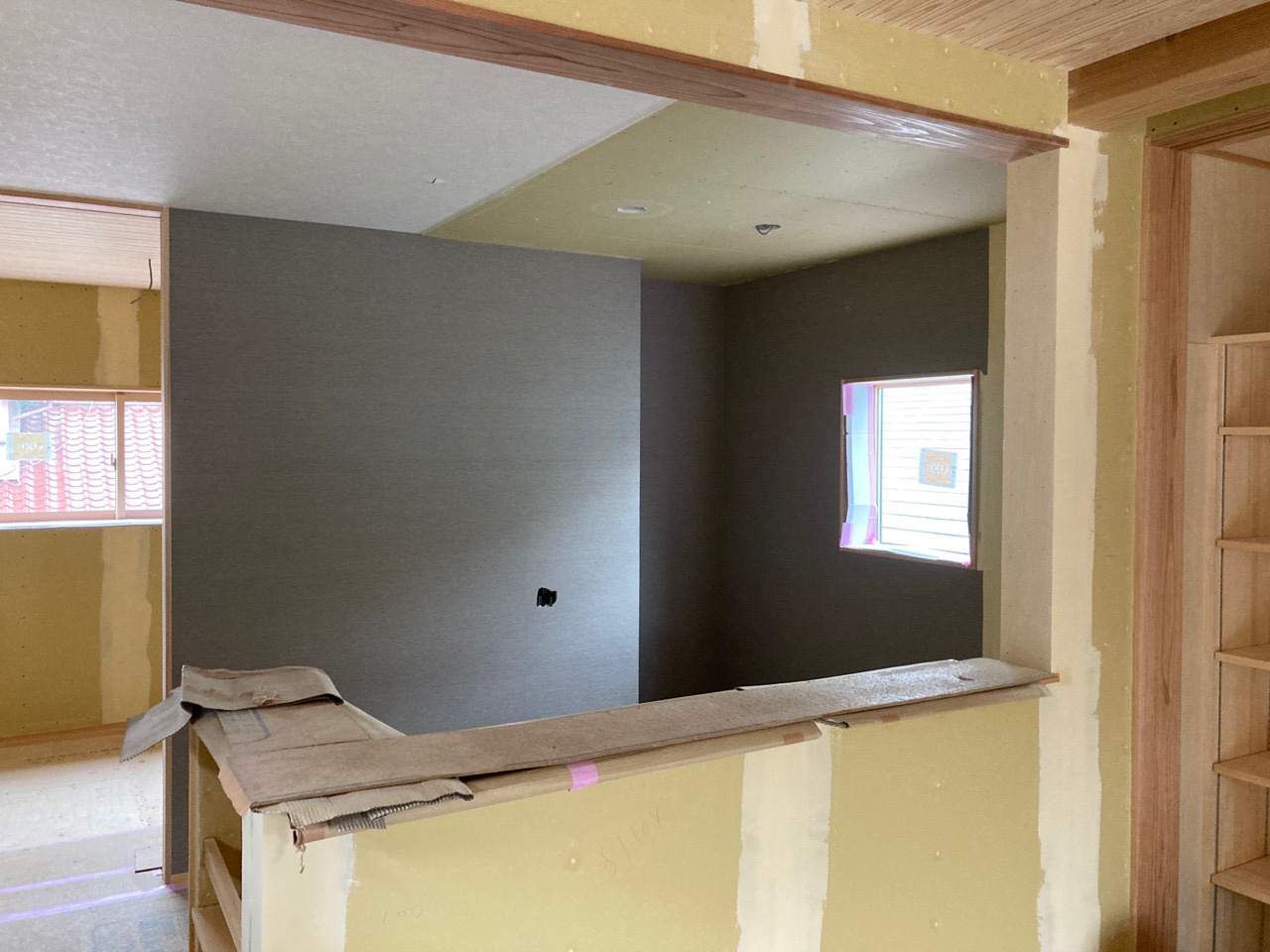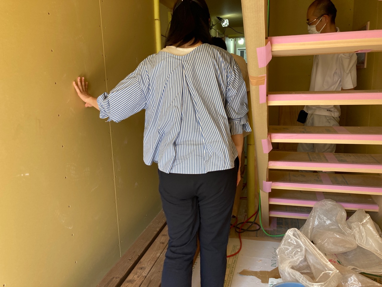 キッチン設備も見学。奥様としては扉や天板の色味の組み合わせが大変気になるところです。キッチンは工程の中では比較的最後の方に設置しますので、これから検討を重ねていきます。