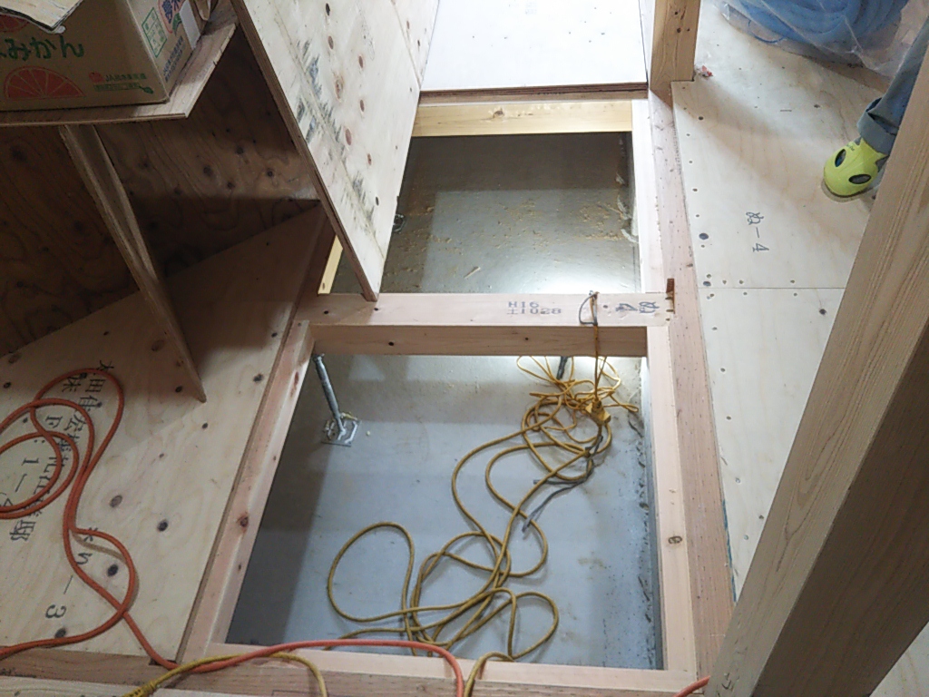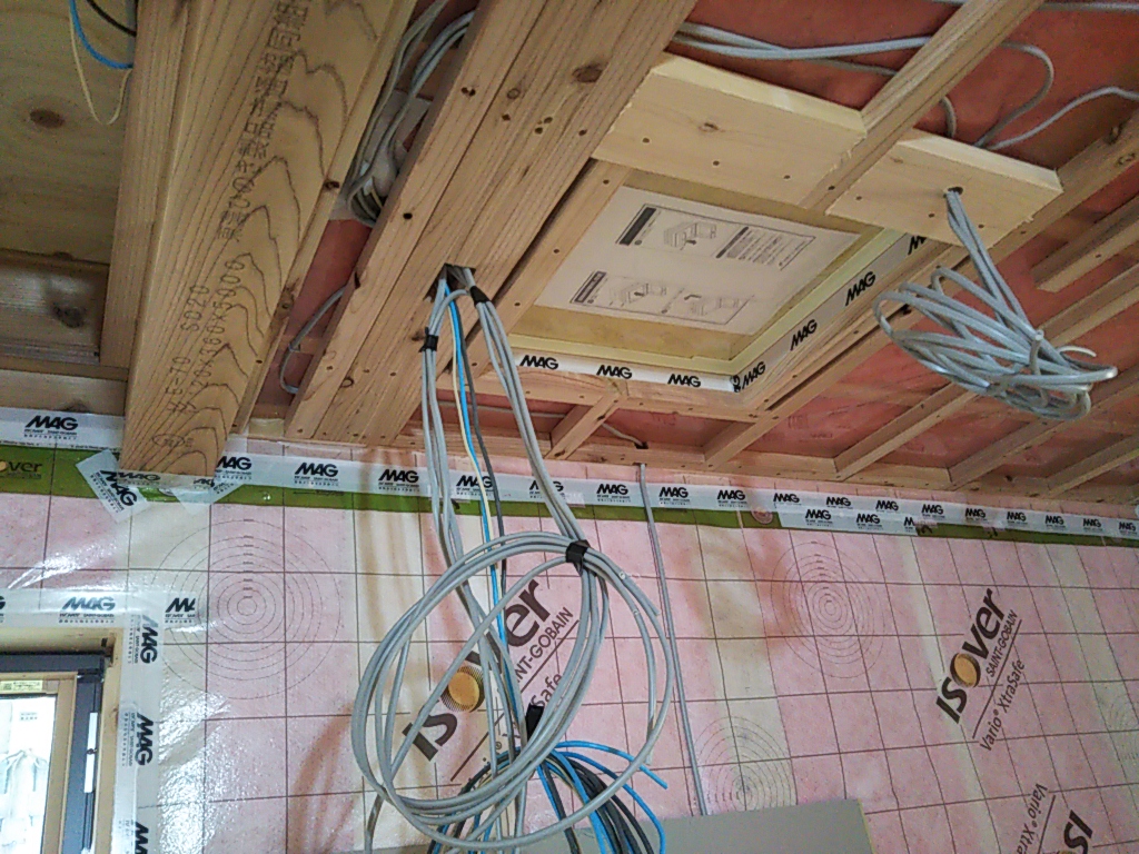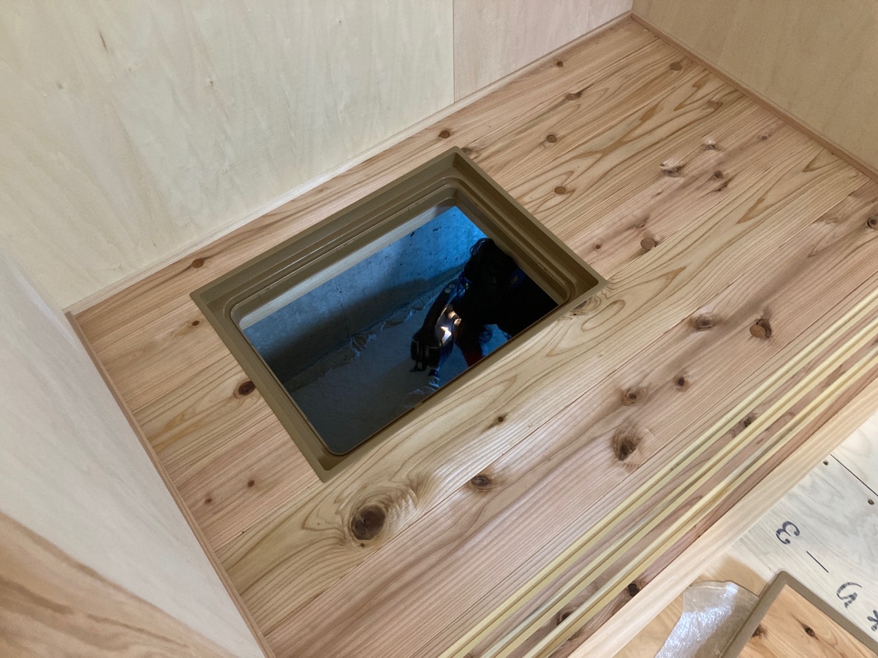 小屋裏もチェック。そういえば申請時に斜線制限が厳しくて、小屋裏と呼べる空間はほとんど無かったなという事が思い出されます。