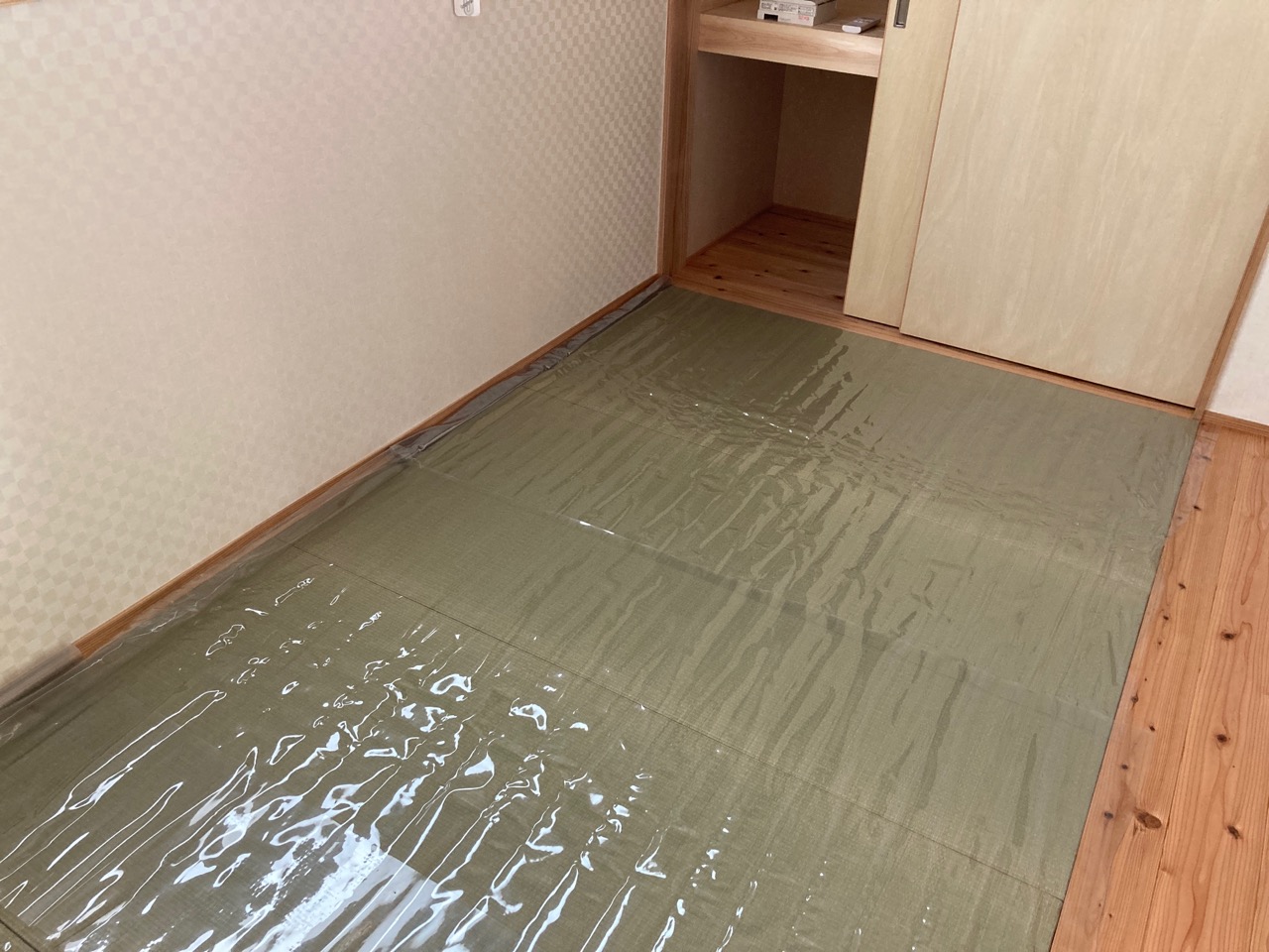 各和室に畳が搬入されました。新しい畳のイグサの良い香りが漂います。