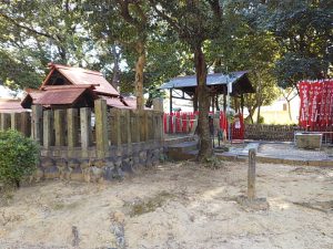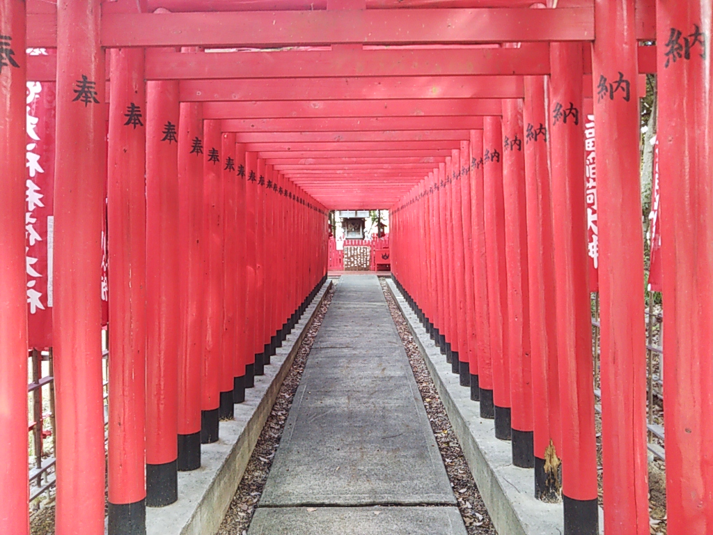 現場近くの神社にある連続した鳥居の参道。京都の伏見稲荷大社を思い起こさせます。お昼休憩時などに神社の一角で弁当でもいただくと気も休まるかもしれません。