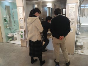 住宅設備の実物を確認にショールームへやってきました。県に発令されている緊急事態宣言の中、各メーカーのショールームも入場制限などされていましたが、担当者の方の厚意で見学する事ができました。ありがとうございます。