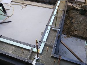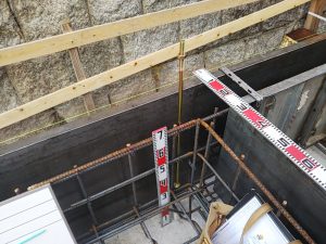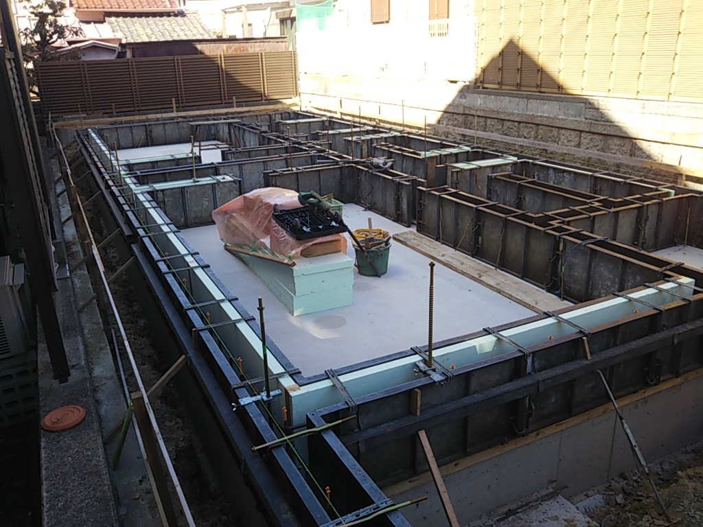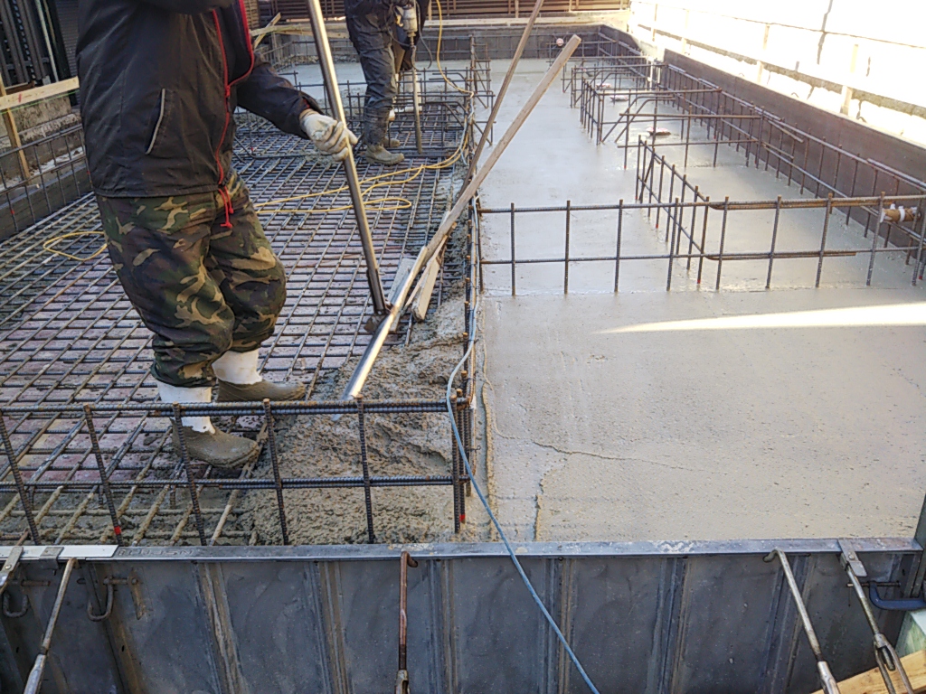 底板打設も無事に完了。残りの型枠を組んだ後、次回立上り部分を打設します。