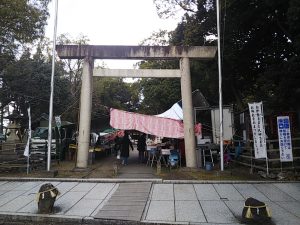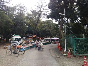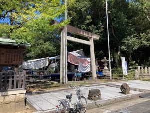 現場の近所の神社では朝市が開催されていました。時間があれば野菜などじっくり吟味して買いたいところですが、この後o様とお打合せの予定、後ろ髪を引かれる思いで神社を後にしました。