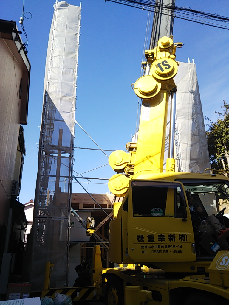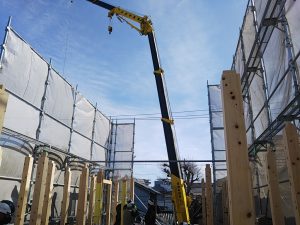昨日の寒さから幾分暖かくなり、晴天に恵まれた本日、yoyo様邸の上棟が行われました。