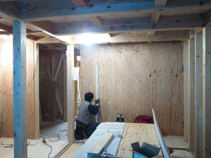 1階部分も仕上材や瓦礫が撤去されかなりすっきりました。o様が古家付きの土地を購入されたため、建物の以前の住人の方や建物そのものには縁もゆかりもありませんが、こうして建築が順番に解体されていく状況を見ていると、妙にノスタルジックな感覚になります。