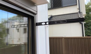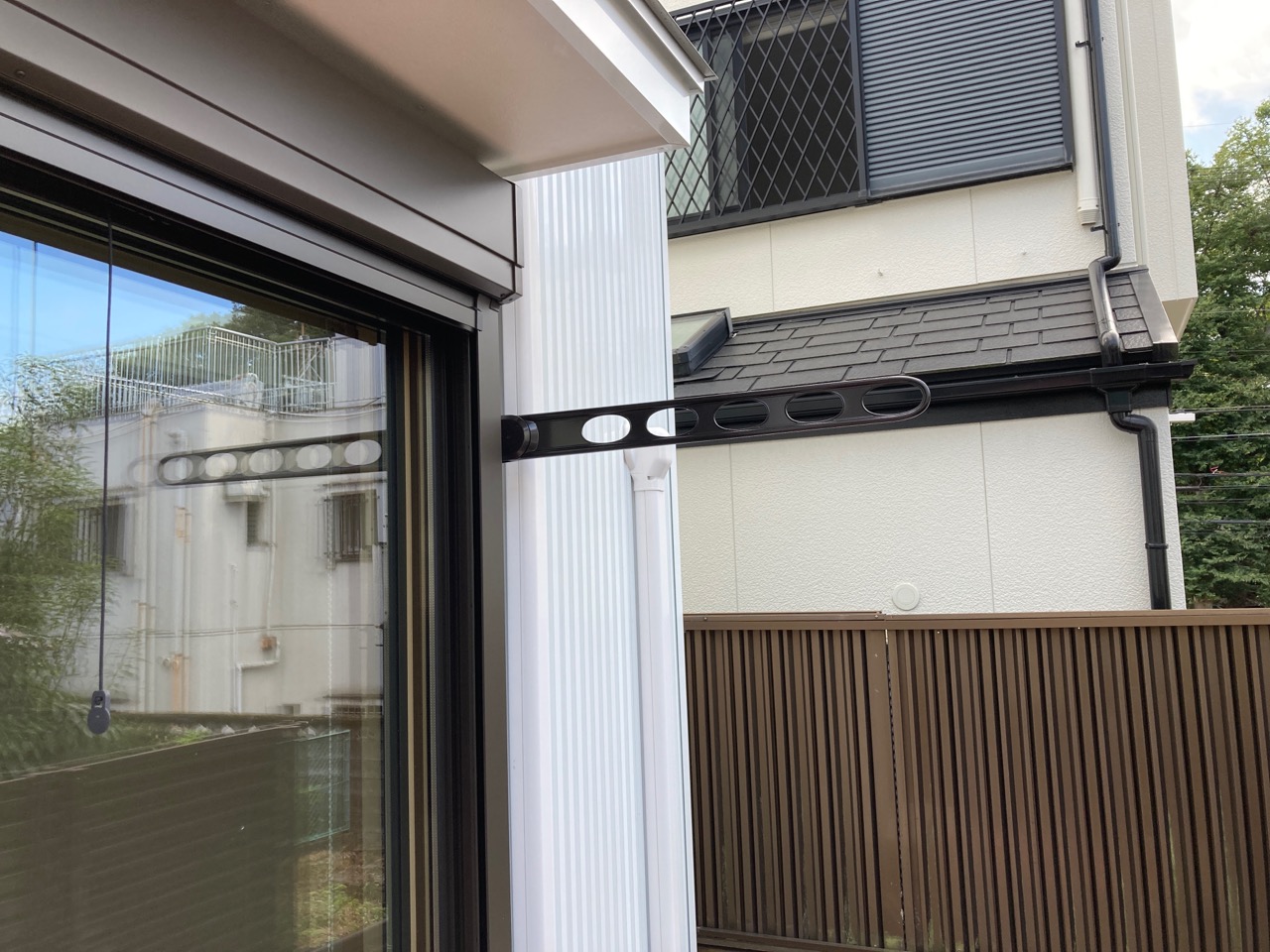 各金物を取付けにやってきました。1階のウッドデッキには物干竿を掛ける金物を取付けています。午後には日当たりの良くなる西側のウッドデッキですので洗濯物も良く乾くでしょう。
