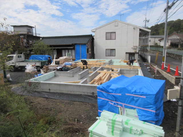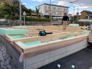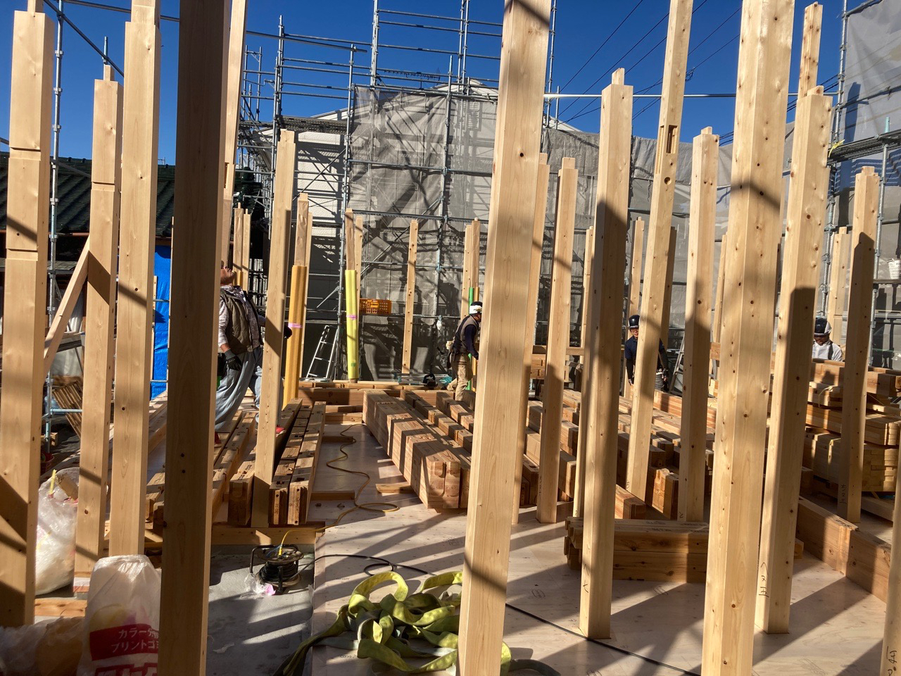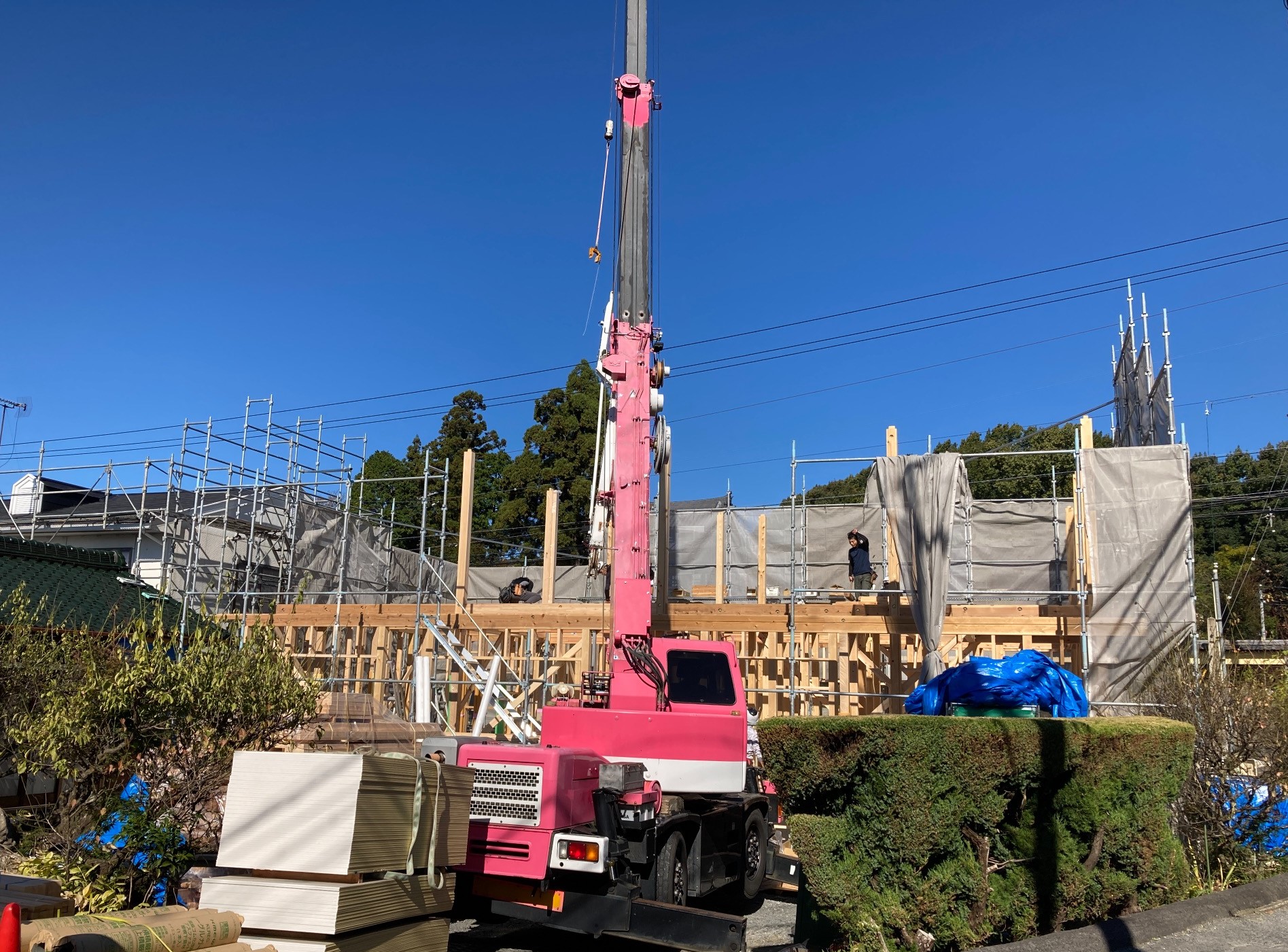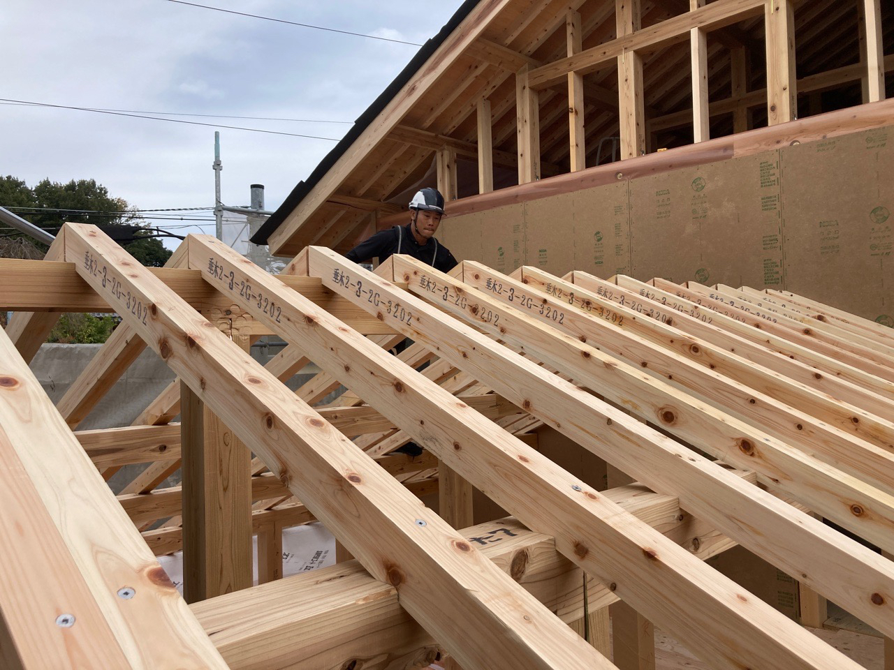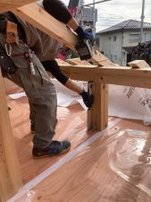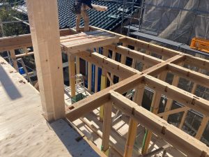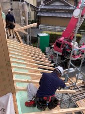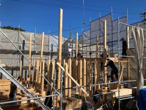2日間の上棟は少し肌寒いですが、作業をする大工さんたちにはちょうど良い天候だったのではないでしょうか?