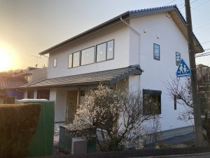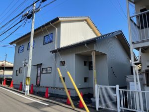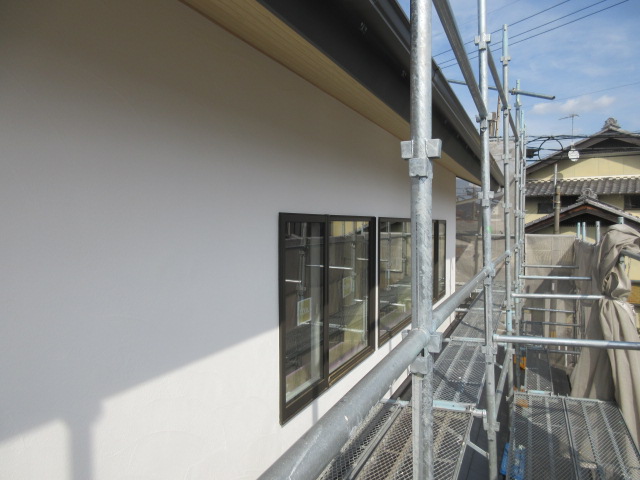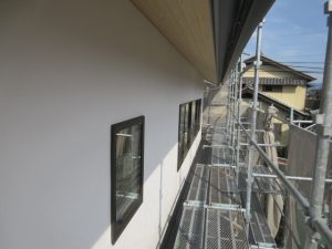 外壁仕上げ後は足場が撤去されすっきりとしました。