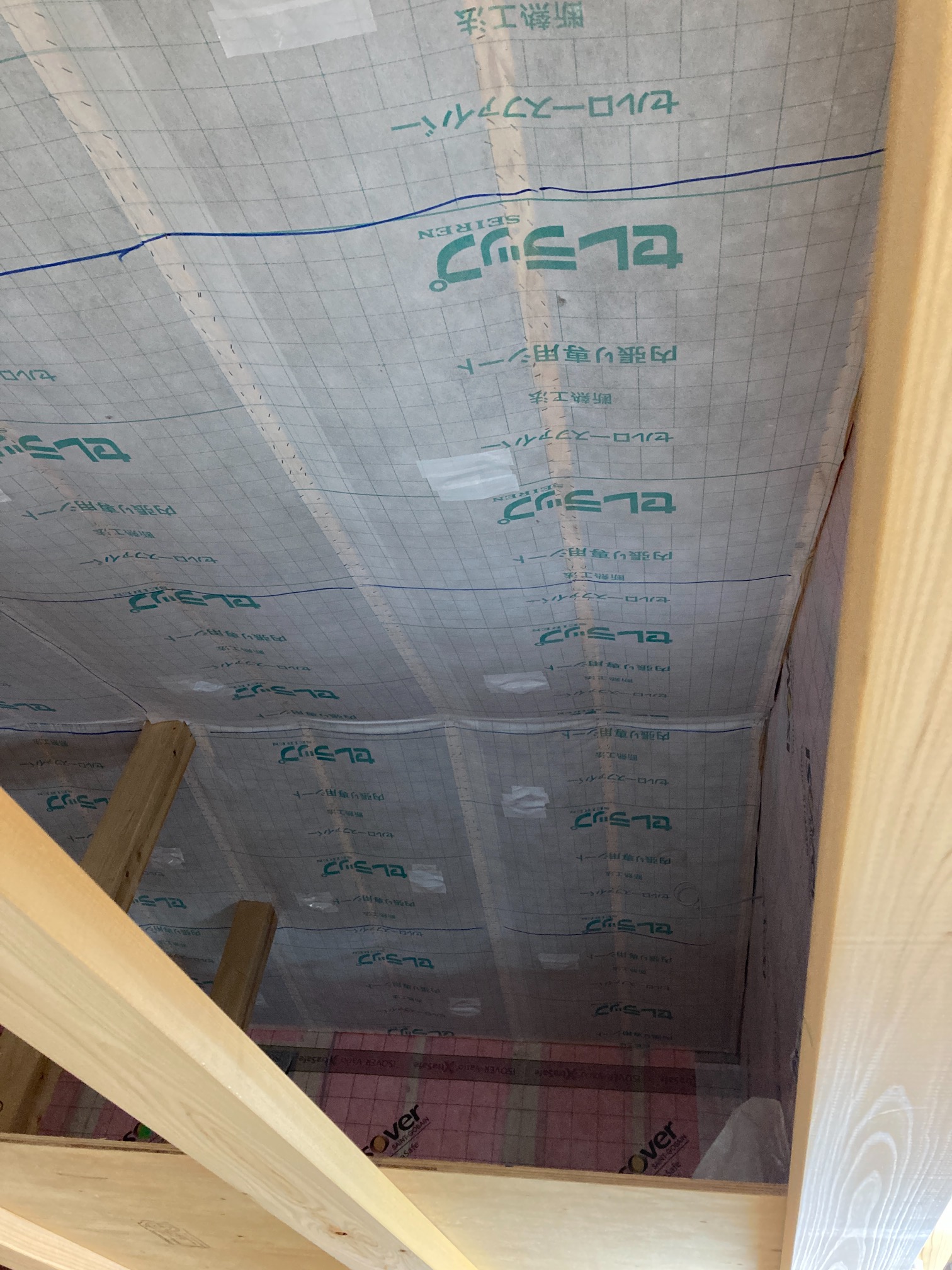 断熱施工後に張られた調湿気密シートは室内の気密性を高め、結露しないように余分な湿気を外に出します。