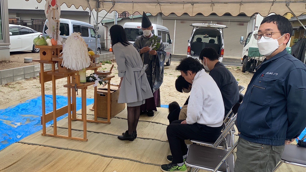3月25日に行われました地鎮祭の📸お天気はあいにくの雨でしたが、催事が行われていた際は雨も小降りで影響なく、無事に終えることができました。雨が降って地も固まって、縁起が良い地鎮祭となりました👍偶然社長がカメラ目線(笑)
